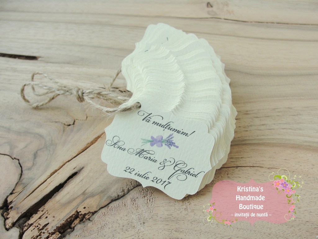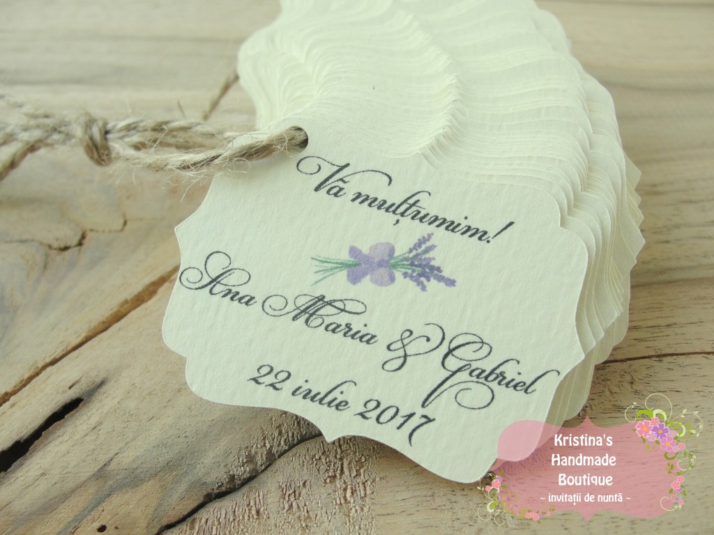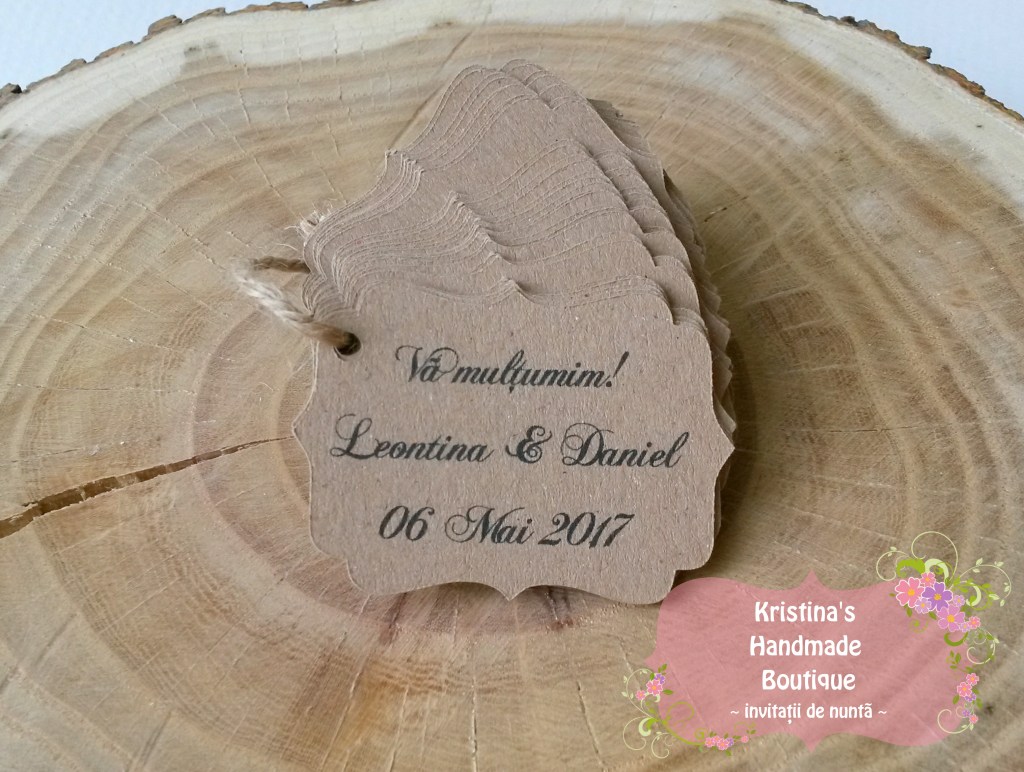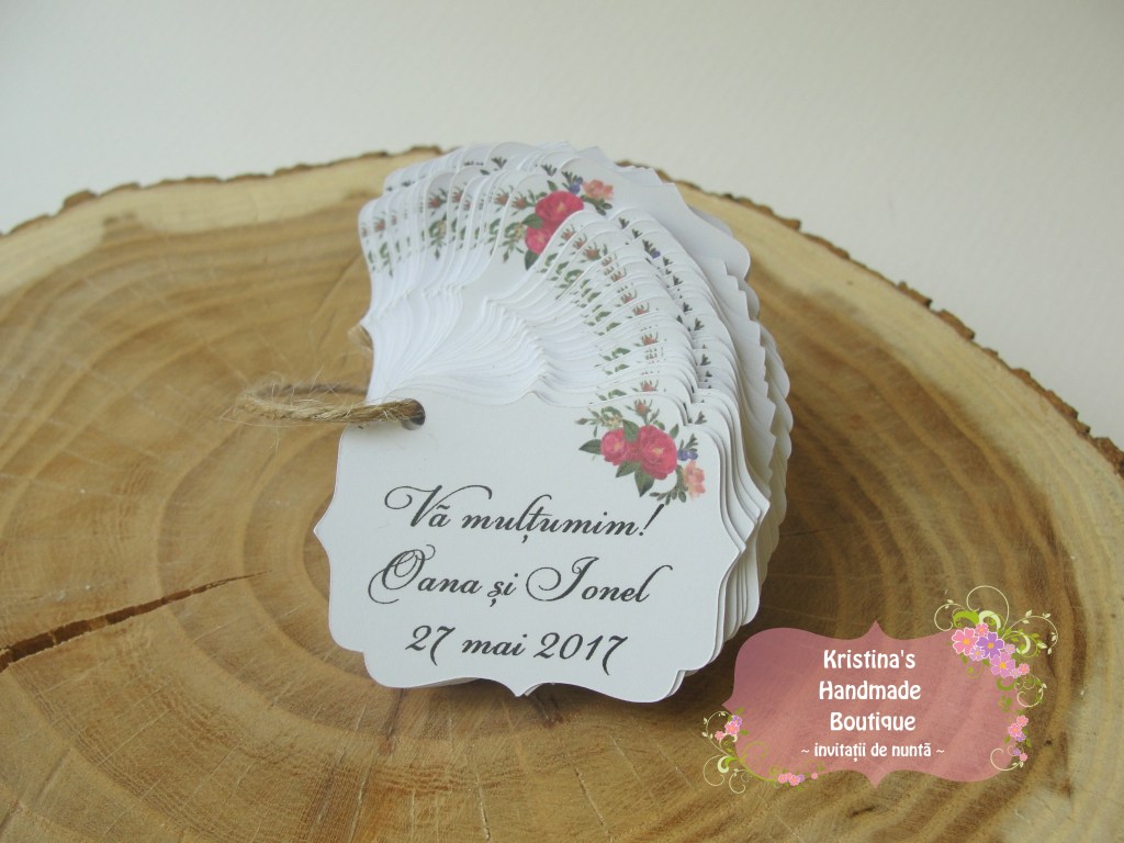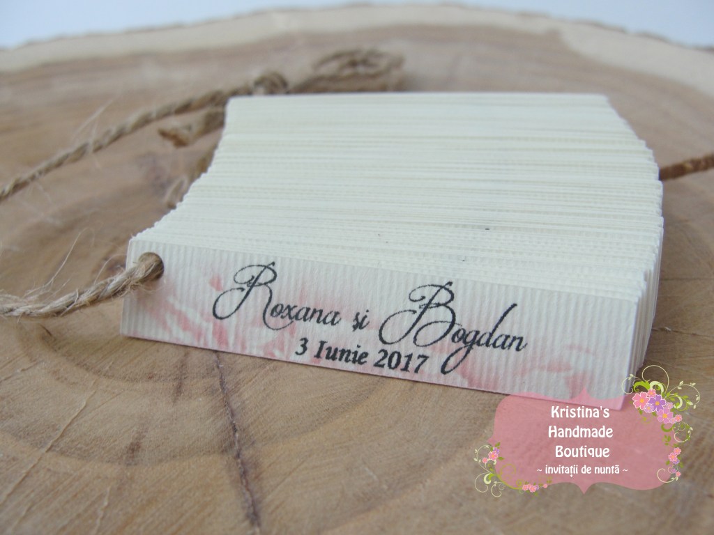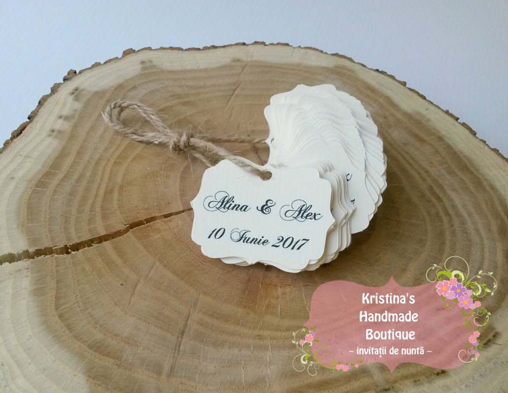 Etichete pentru marturii de nunta sau botez realizate din carton alb/ivory/reciclat – pot fi personalizate dupa preferinte