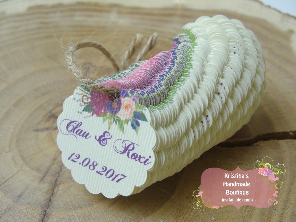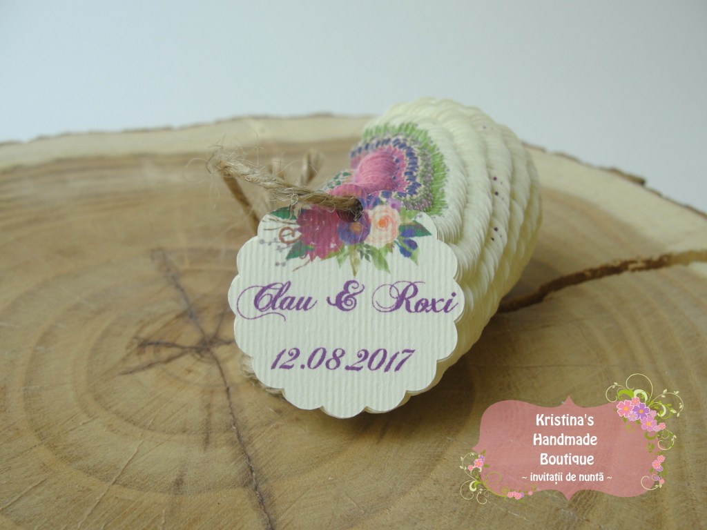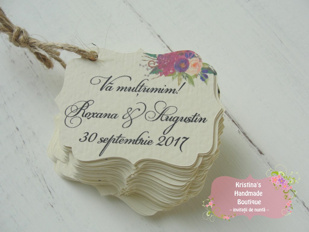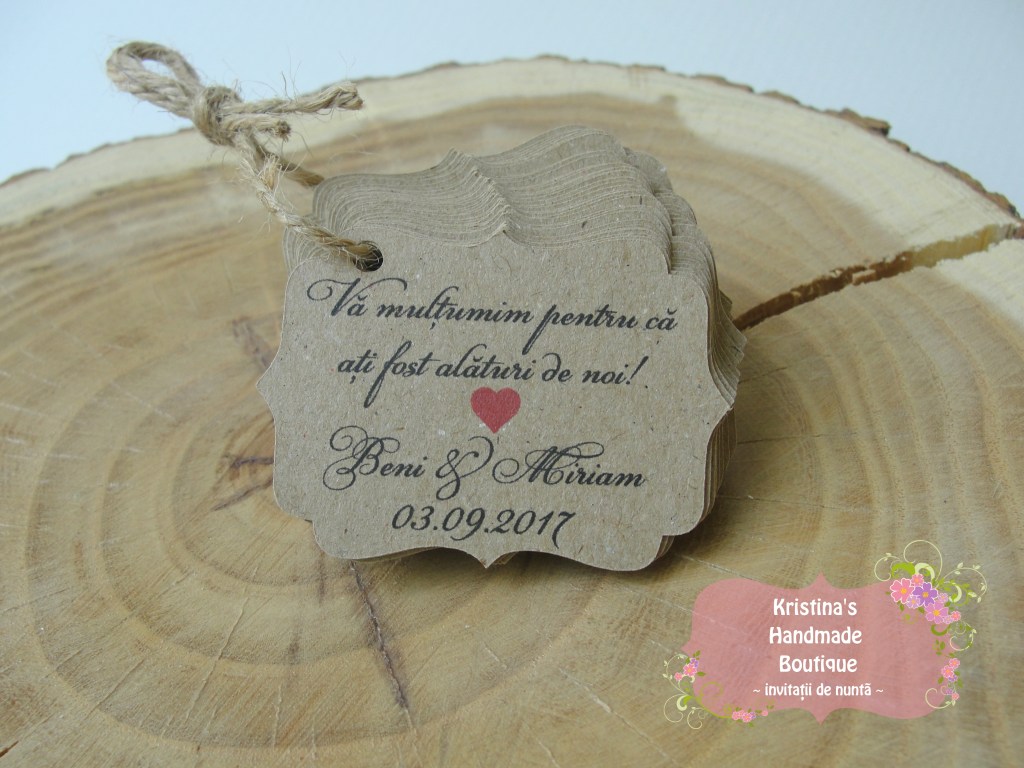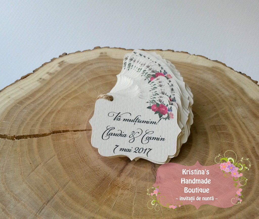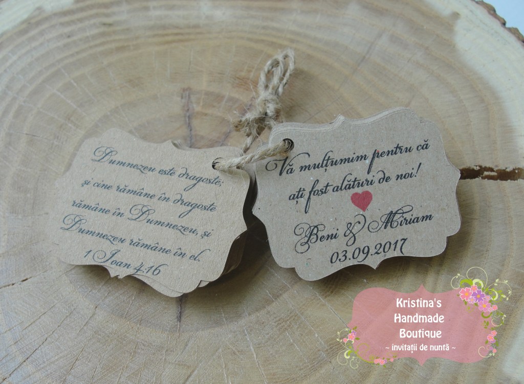 Etichete pentru marturii de nunta sau botez realizate din carton alb/ivory/reciclat – pot fi personalizate dupa preferinte