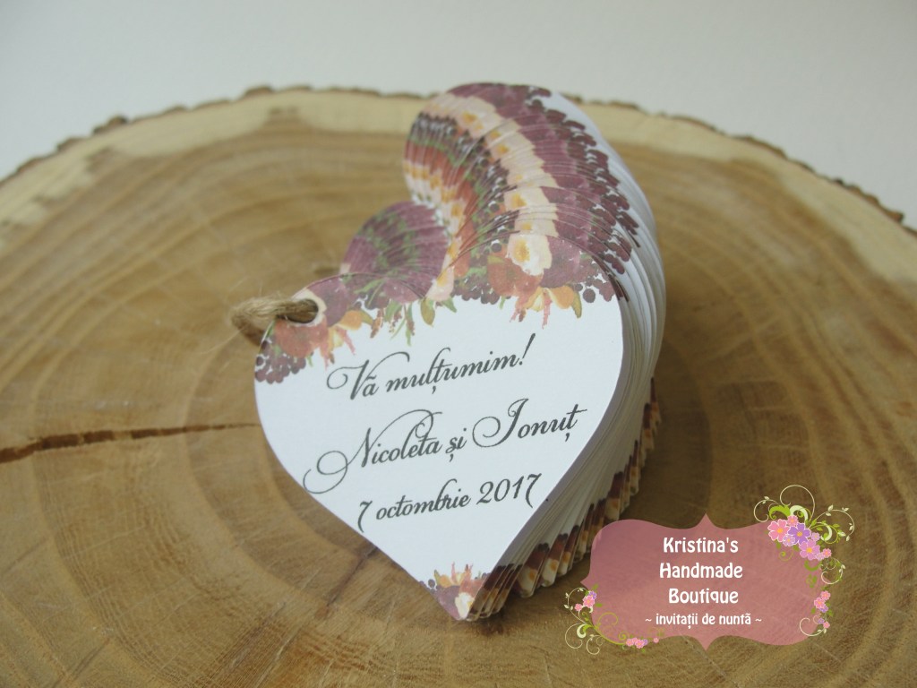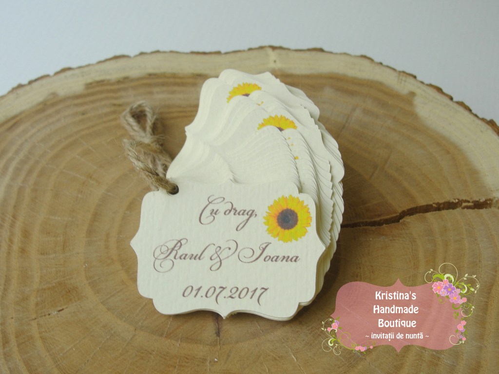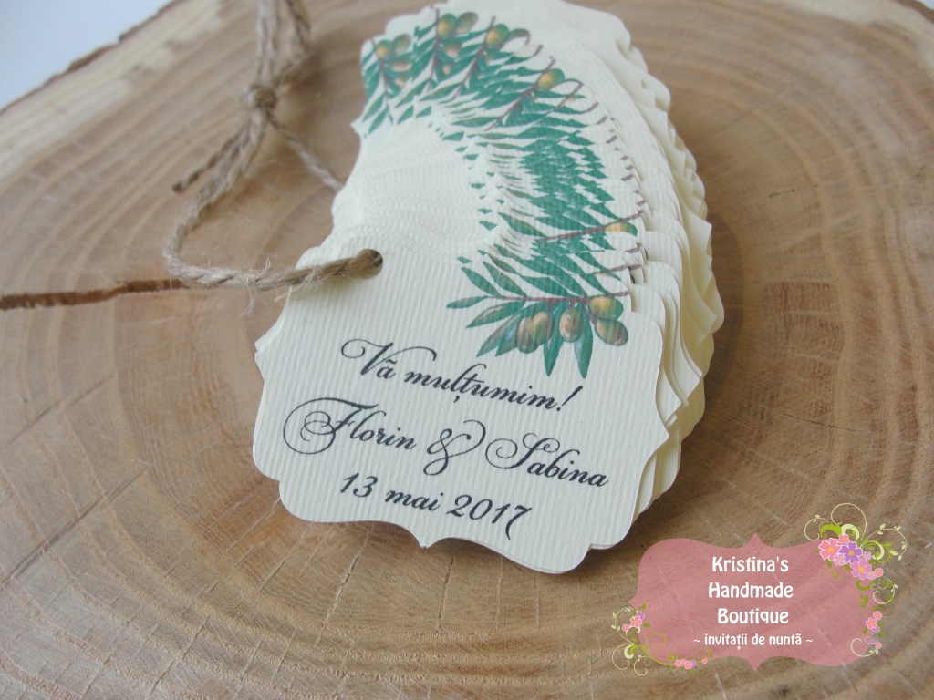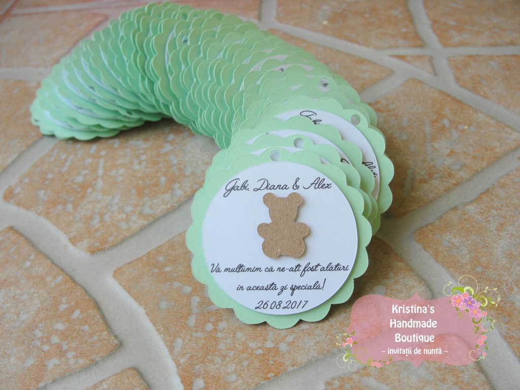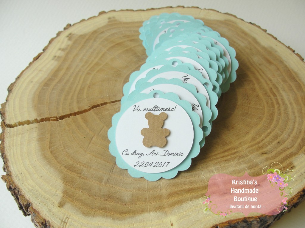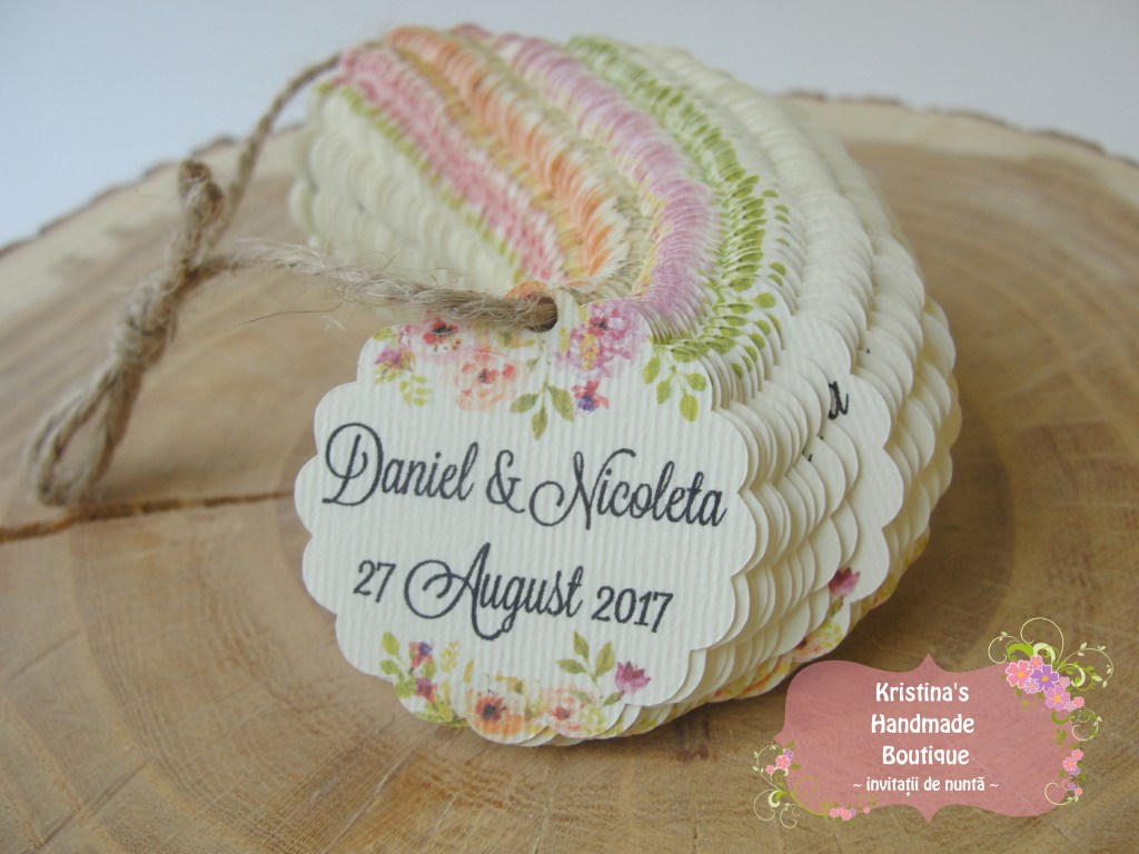 Etichete pentru marturii de nunta sau botez realizate din carton alb/ivory/reciclat – pot fi personalizate dupa preferinte
