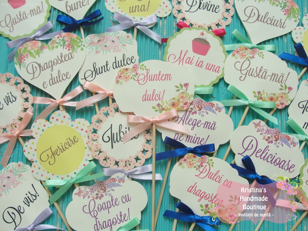 Produsele pot fi personalizate in functie de preferinte pentru a se potrivi cat mai bine cu tematica evenimentului. In acelasi stil se poate realiza si restul papetariei.