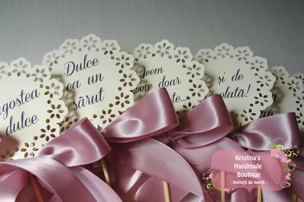 Produsele pot fi personalizate in functie de preferinte pentru a se potrivi cat mai bine cu tematica evenimentului. In acelasi stil se poate realiza si restul papetariei.
