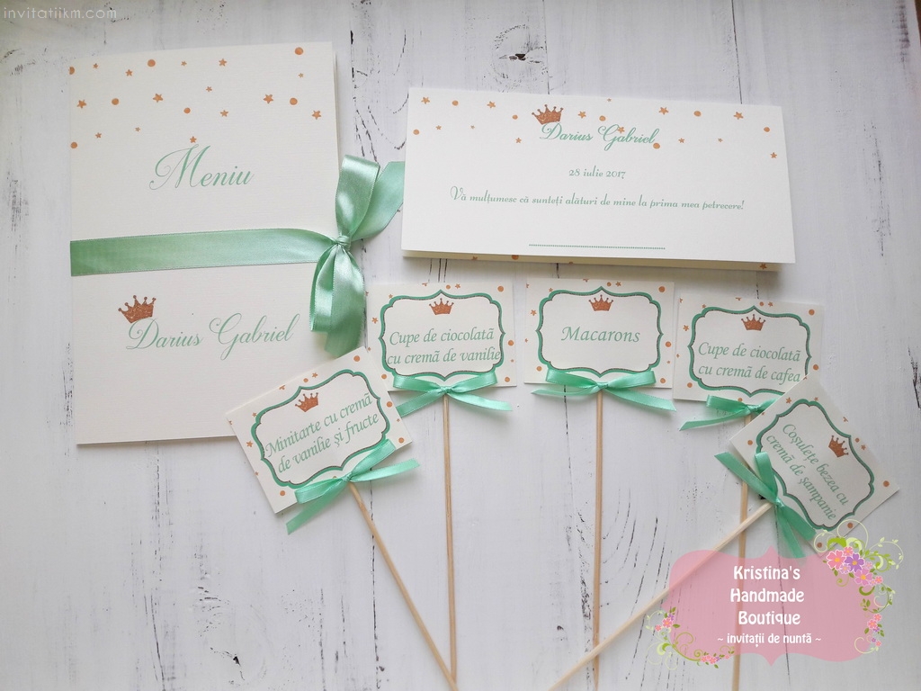 Produsele pot fi personalizate in functie de preferinte pentru a se potrivi cat mai bine cu tematica evenimentului. In acelasi stil se poate realiza si restul papetariei.