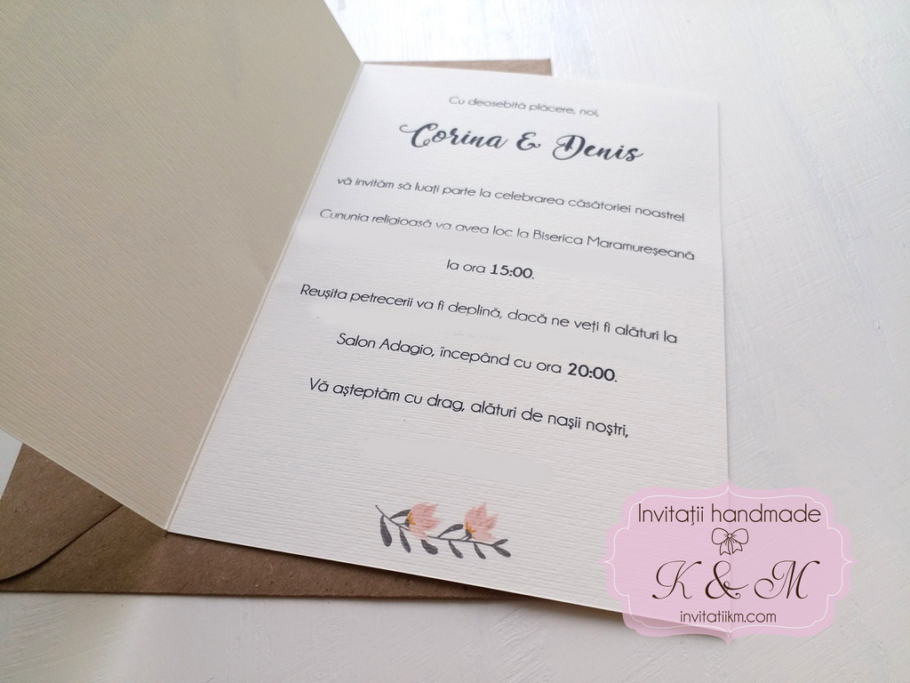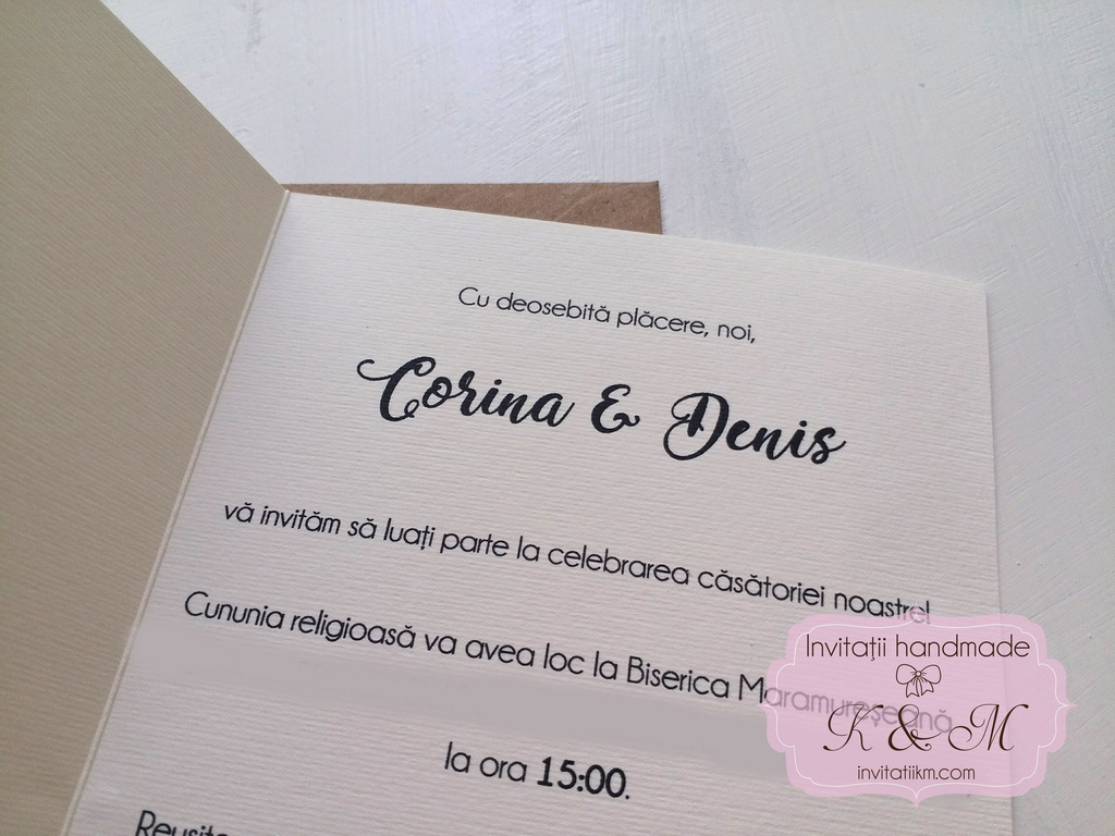 Pret invitatie deschidere tip felicitare: 5.5 lei/carton alb neted sau 7 lei/carton ivory texturat