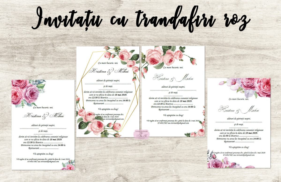 Produsele pot fi personalizate in functie de preferinte pentru a se potrivi cat mai bine cu tematica evenimentului. In acelasi stil se poate realiza si restul papetariei.