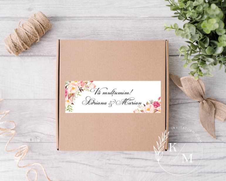 Etichete autocolante/stickere marturii nunta cu flori roz, somon