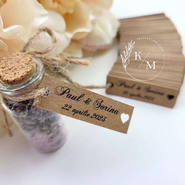 Etichete pentru marturii de nunta realizate din carton reciclat