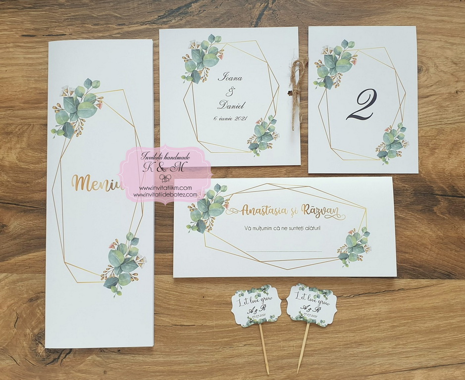 Produsele pot fi personalizate in functie de preferinte pentru a se potrivi cat mai bine cu tematica evenimentului. In acelasi stil se poate realiza si restul papetariei.