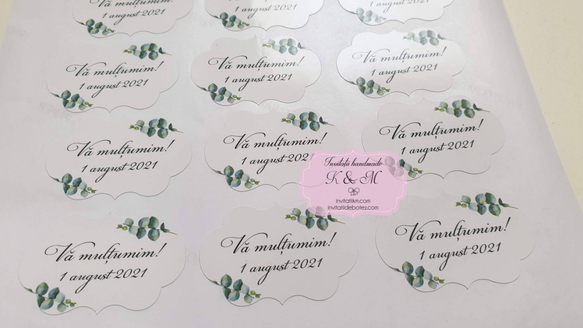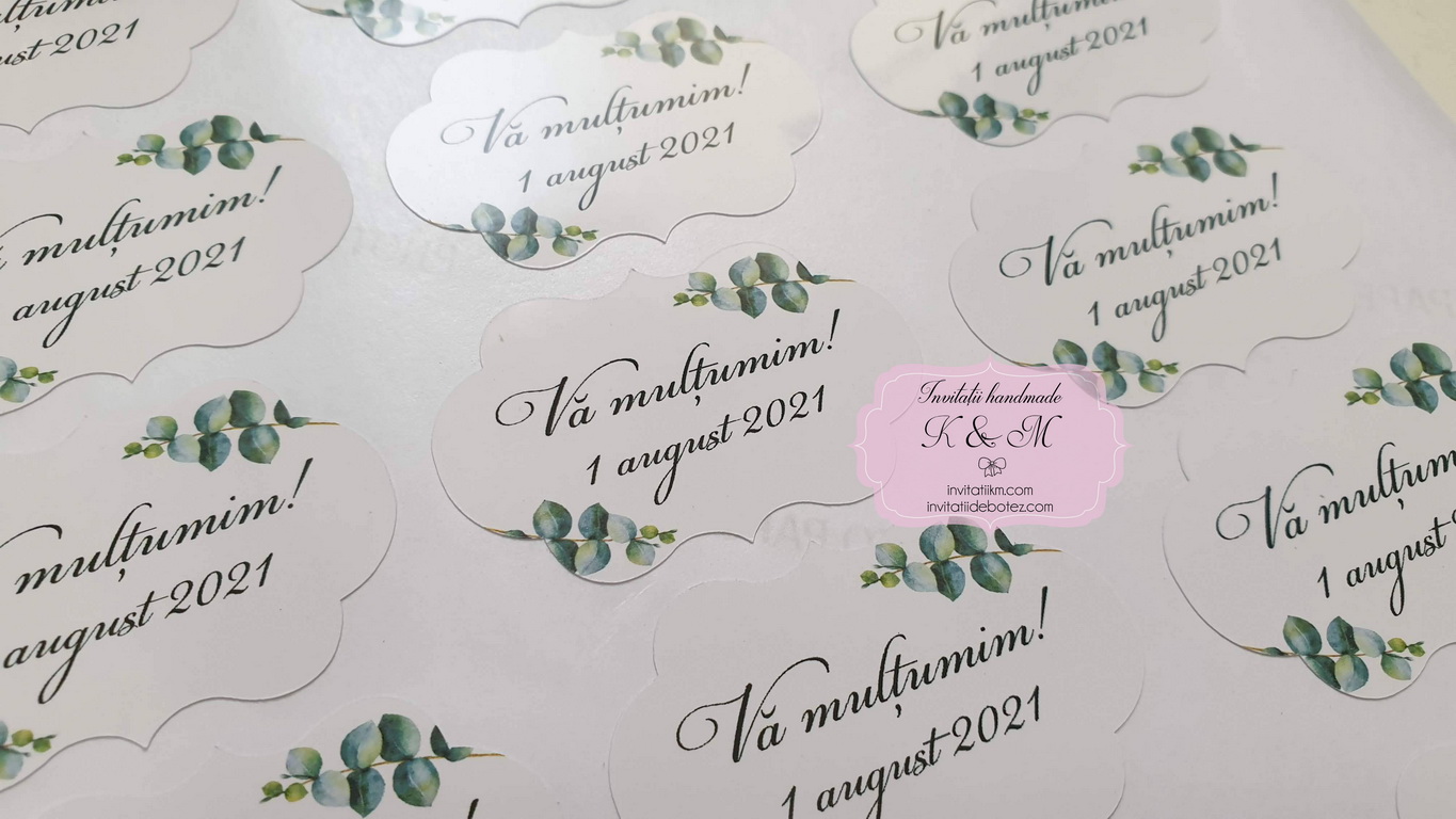 Etichete autoadezive/stickere pentru invitatii/marturii nunta/botez, realizate din autocolant lucios/mat