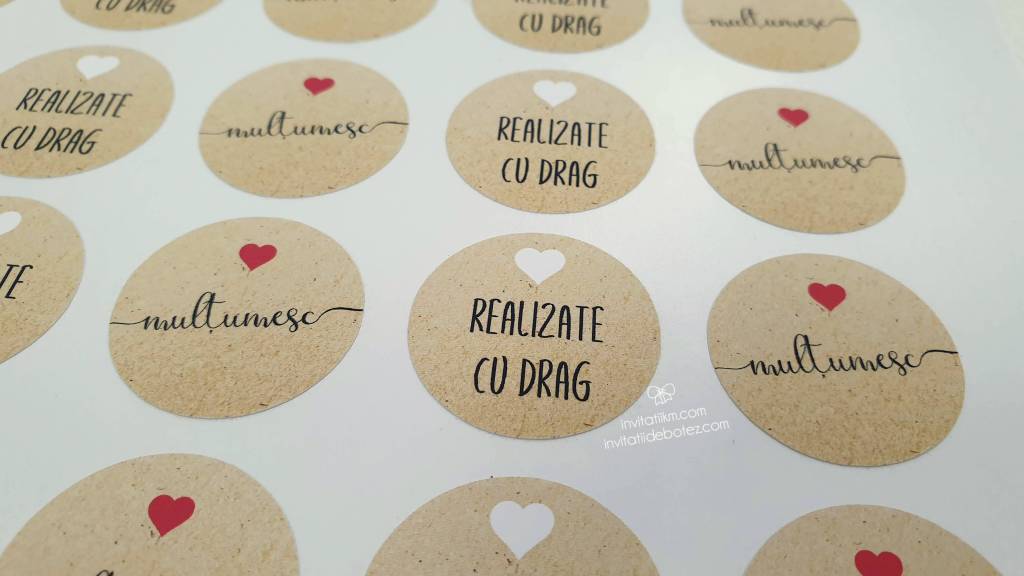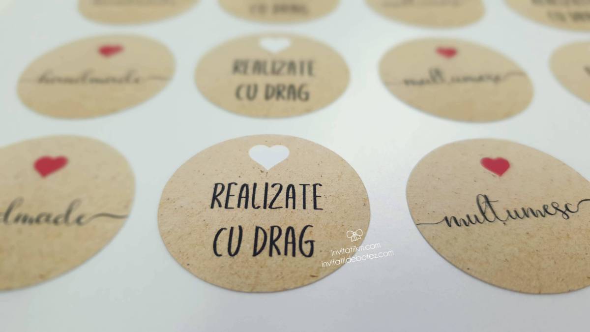 Stickere, etichete pentru produse handmade/marturii realizate din autocolant lucios/mat