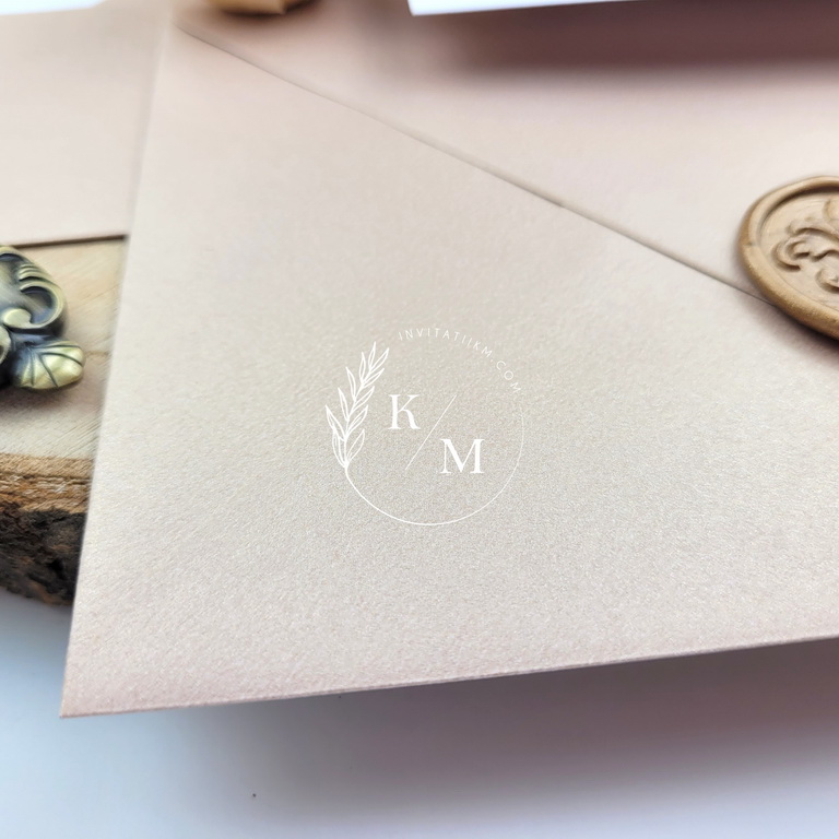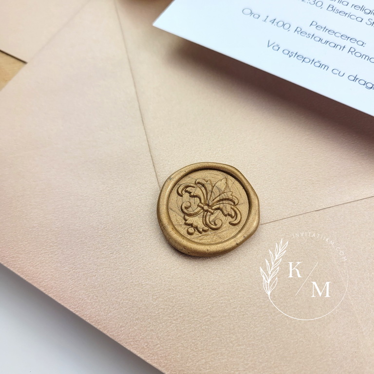 In imagini: invitatie din carton alb neted + plic bej sidefat + liner + sigiliu: 8.5 lei