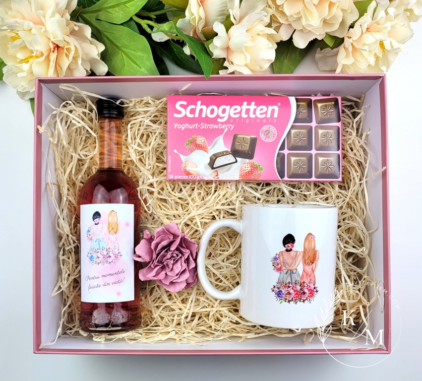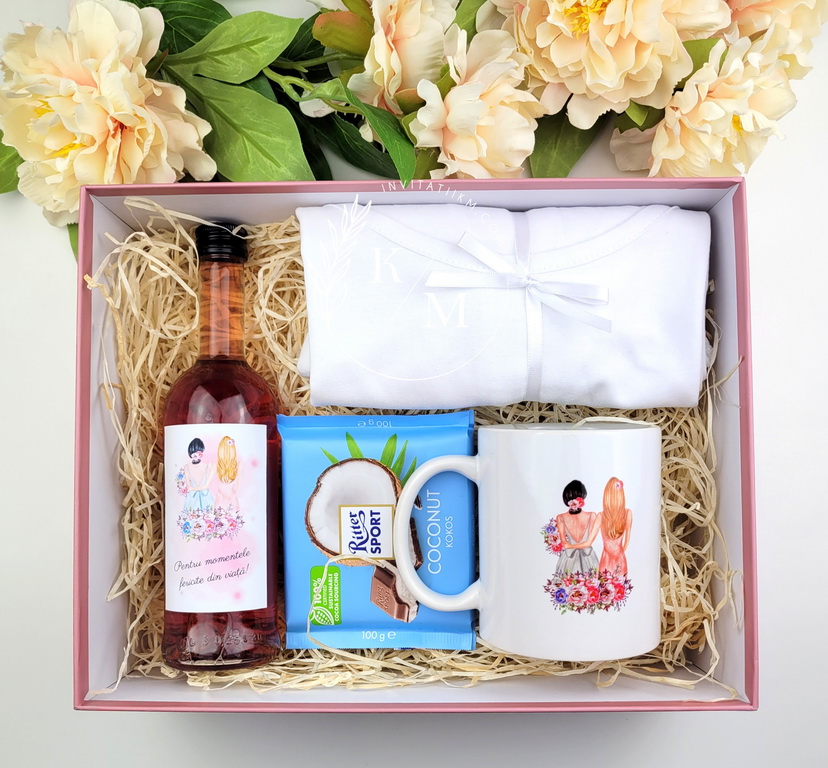 Set cadou/giftbox pentru domnisoarele de onoare, perfect pentru a fi oferite viitoarelor ajutoare in ziua nuntii sau la petrecerea burlacitelor. Il veti primi ambalat in cutie cutie premium din carton roz antic/prafuit + fundita asortata si sticker cu nume, gata de a-l oferi cadou si il putem expedia oriunde doriti, trebuie doar sa ne lasati adresa celui care il va primi. Textele se pot personaliza dupa preferinte. De asemenea, pe capacul cutiei poate fi trecut numele domnisoarei.