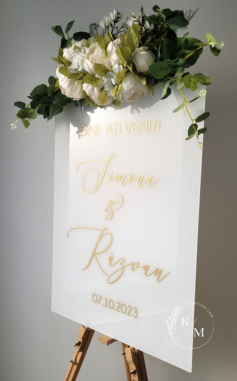 Vezi aici varianta cu marginea transparenta: https://invitatiikm.com/2023/02/16/panou-bun-venit-la-nunta-noastra-alb/