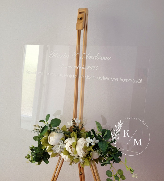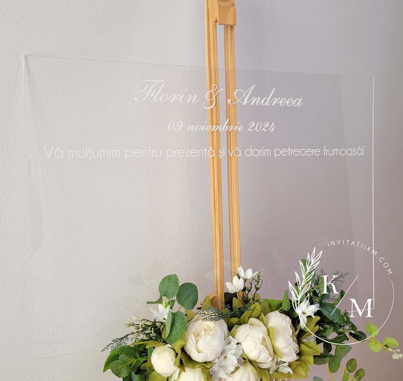 panou transparent din plexiglas si Liste cu asezarea invitatilor la mese