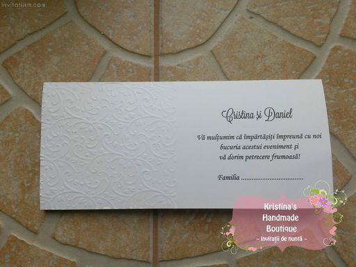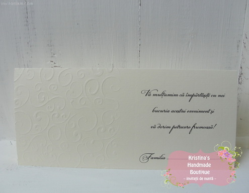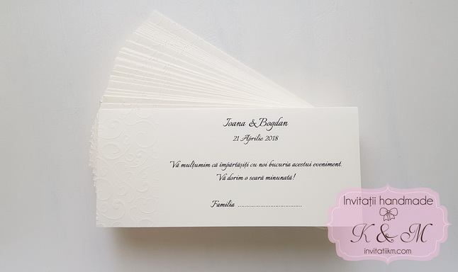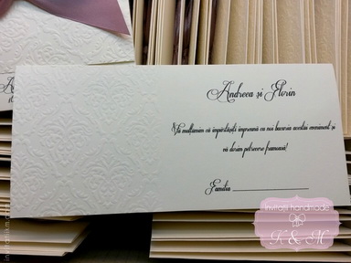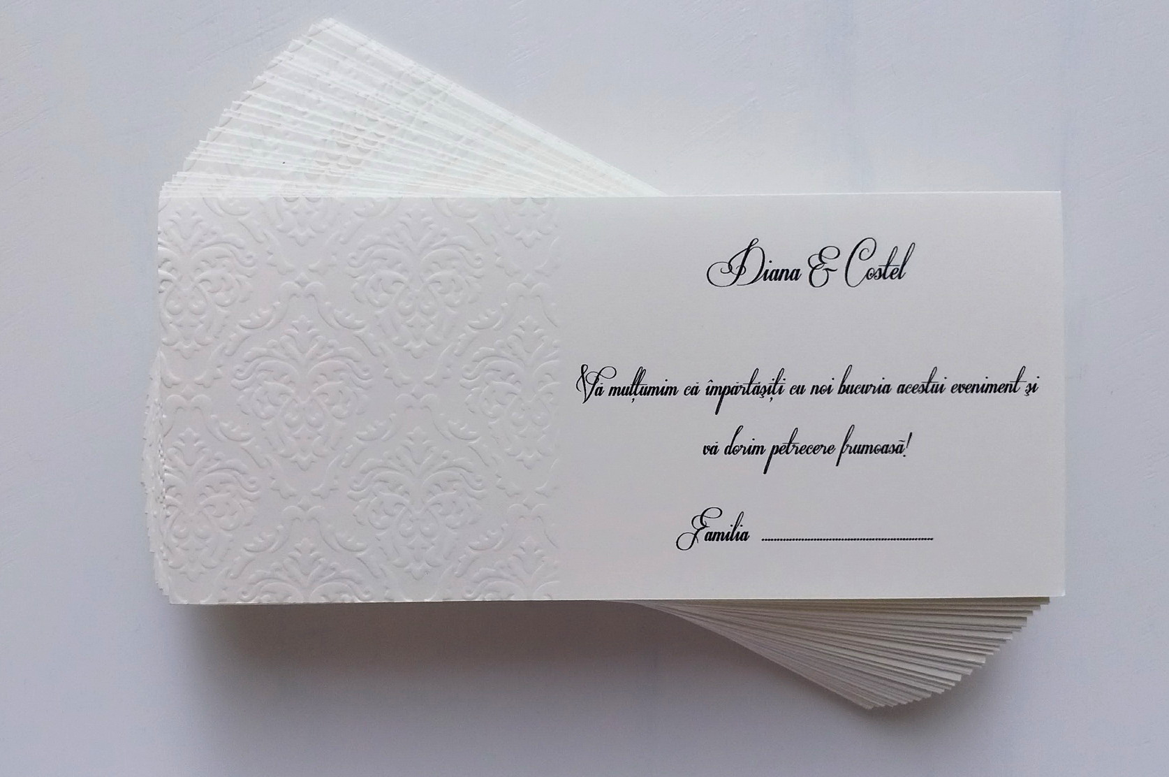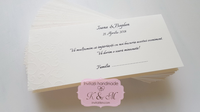 - Pot fi utilizate ca plicuri de bani (au buzunar interior) sau place card-uri (optional: + 0.9 lei/print nume invitat pe plic)