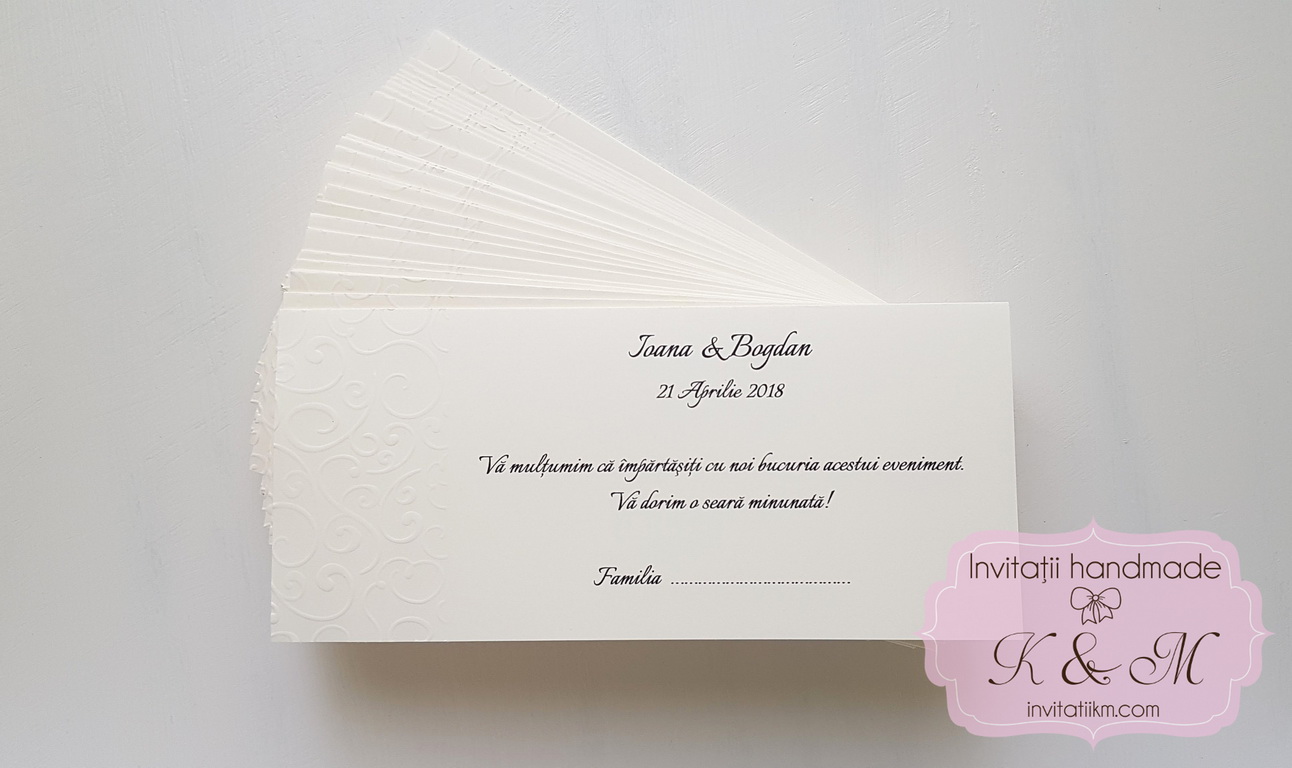 - Pot fi utilizate ca plicuri de bani (au buzunar interior) sau place card-uri (optional: + 0.9 lei/print nume invitat pe plic)