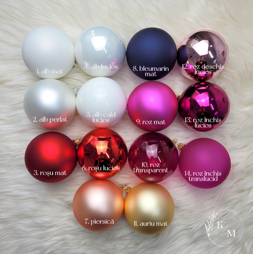 Fiecare glob este personalizat cu numele, inițialele sau mesajul dorit și ambalat individual cu atenție într-o cutie elegantă, gata de oferit cadou celor dragi. Globurile se pot accesoriza (gratuit) cu fundiță satinată din material de calitate, care nu se deșiră.