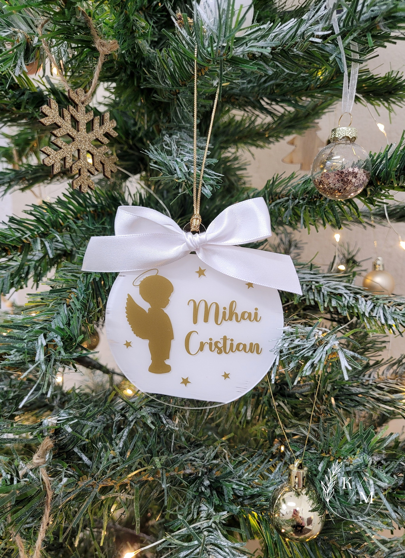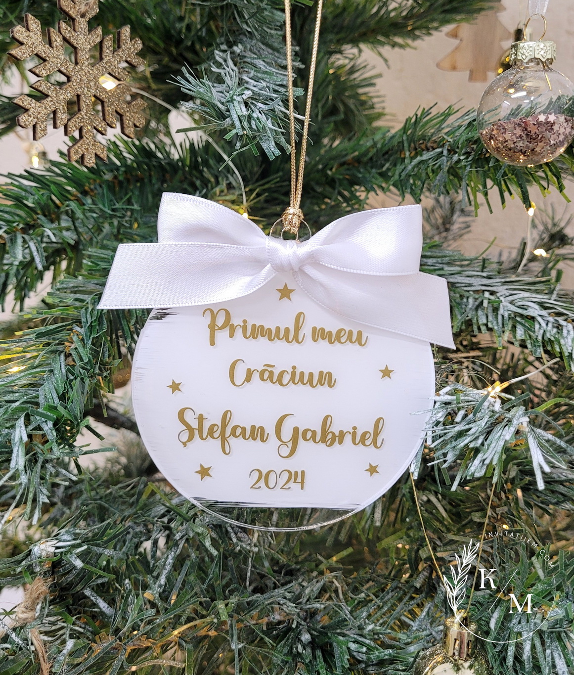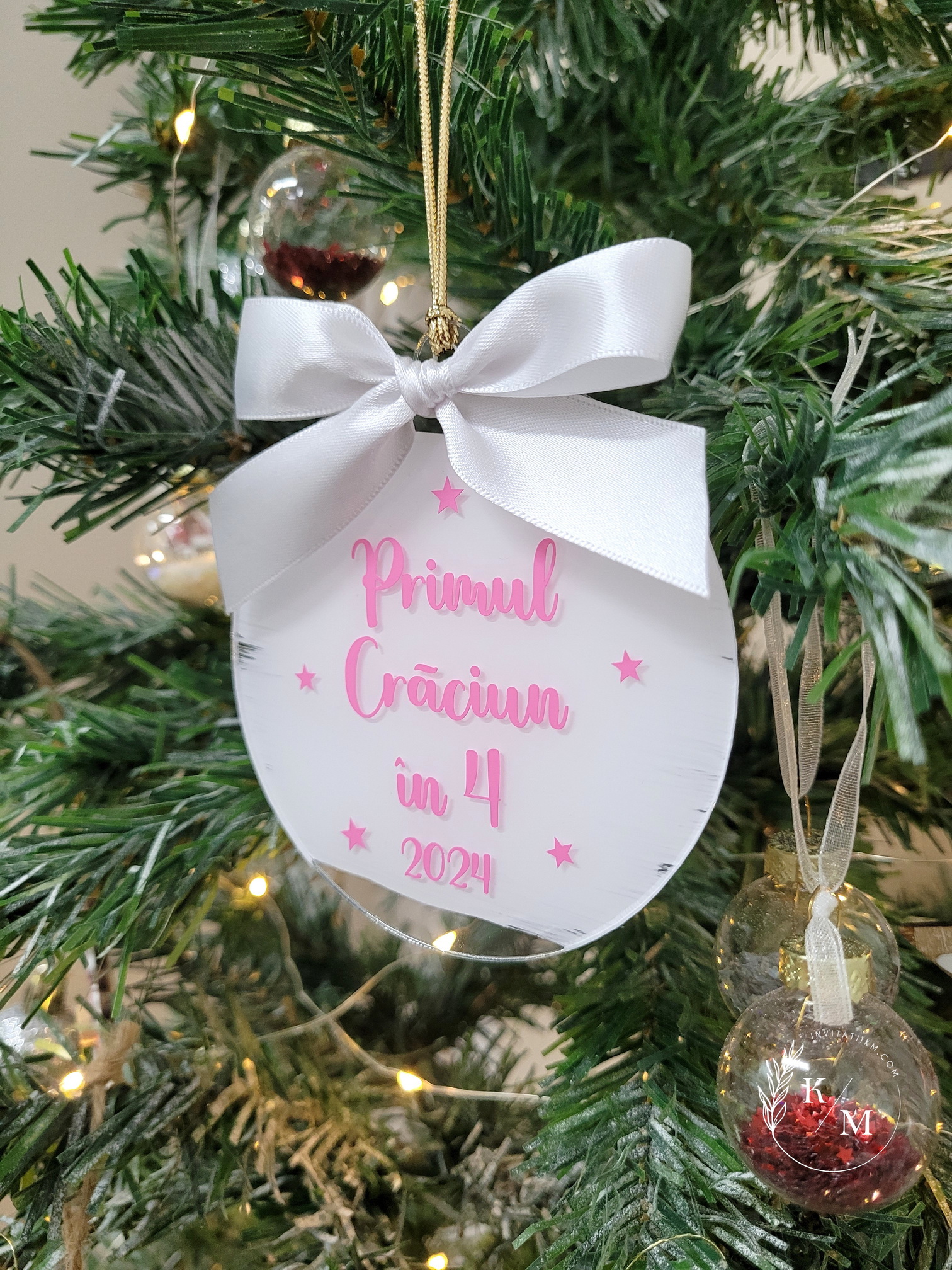 Ornamente de Craciun personalizate cu nume sau texte (Craciun fericit, Craciun magic, Primul Craciun impreuna, Primul Craciun in 2/3/4 etc).