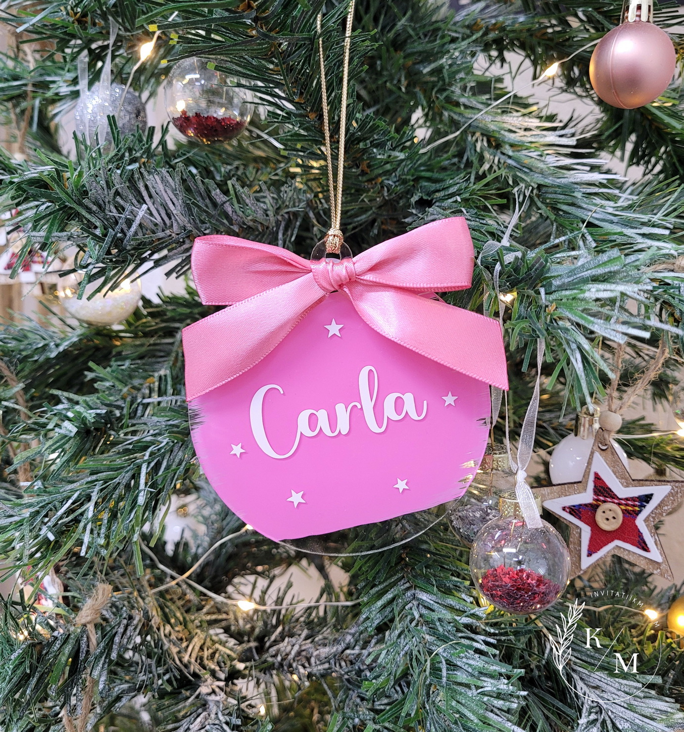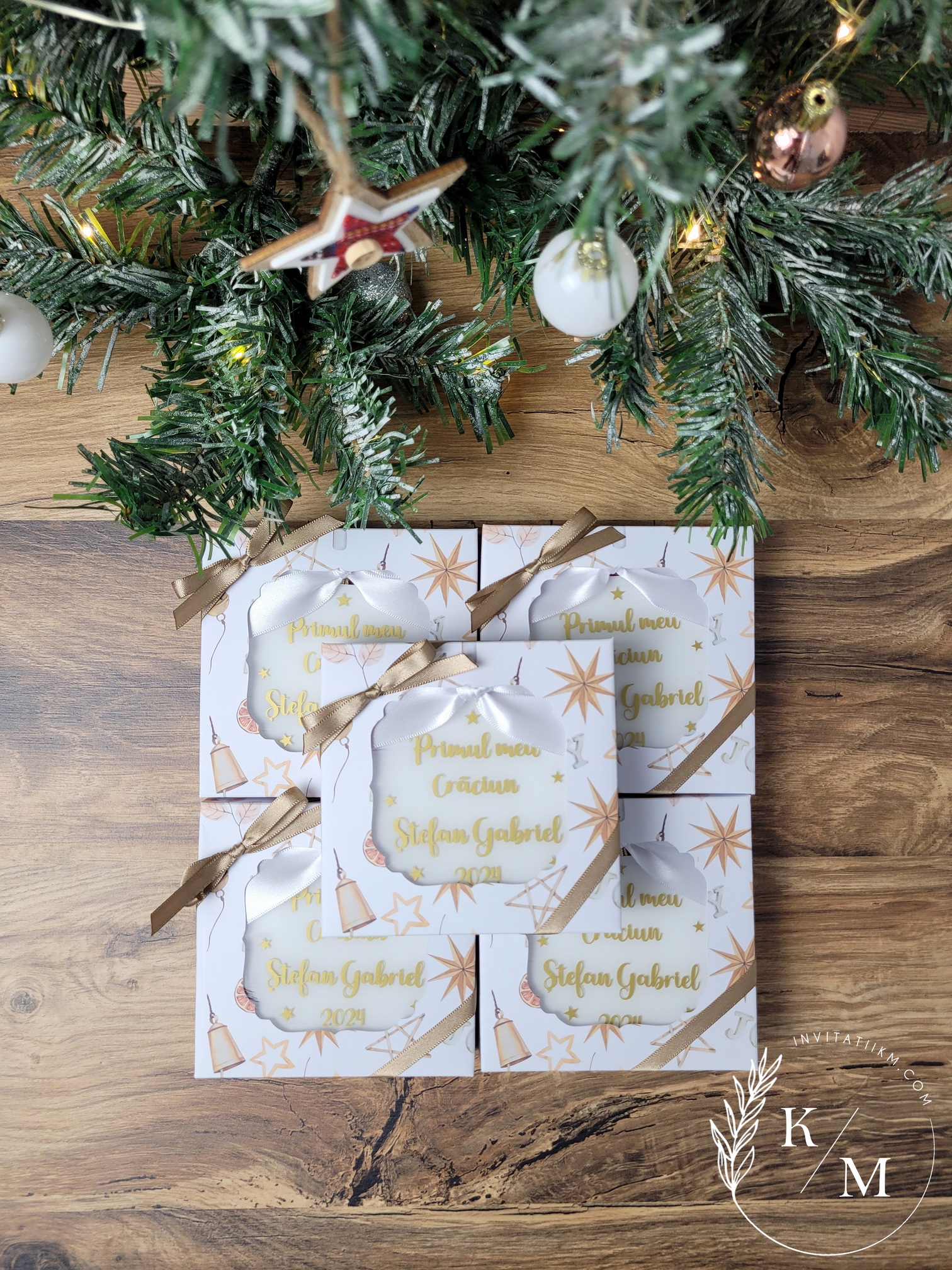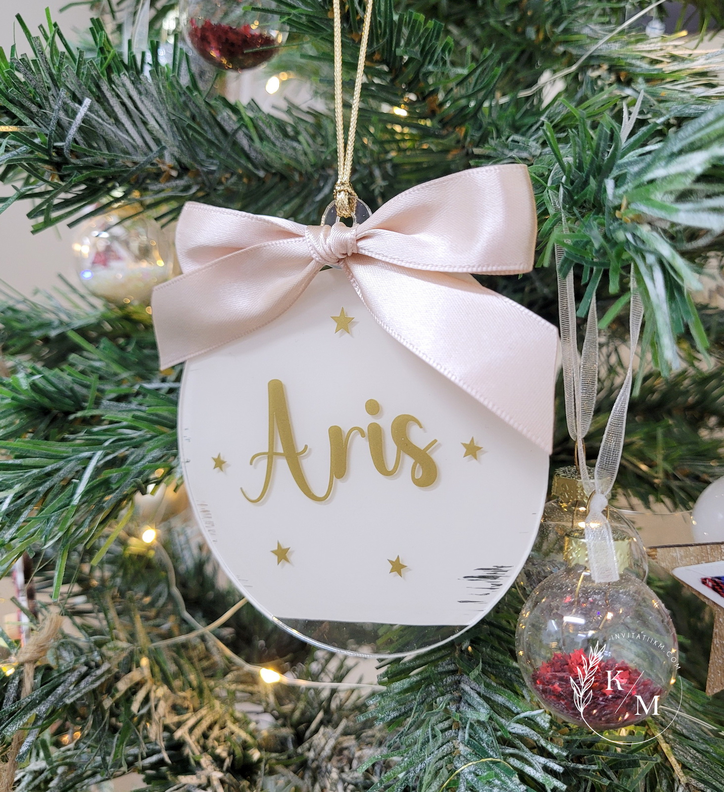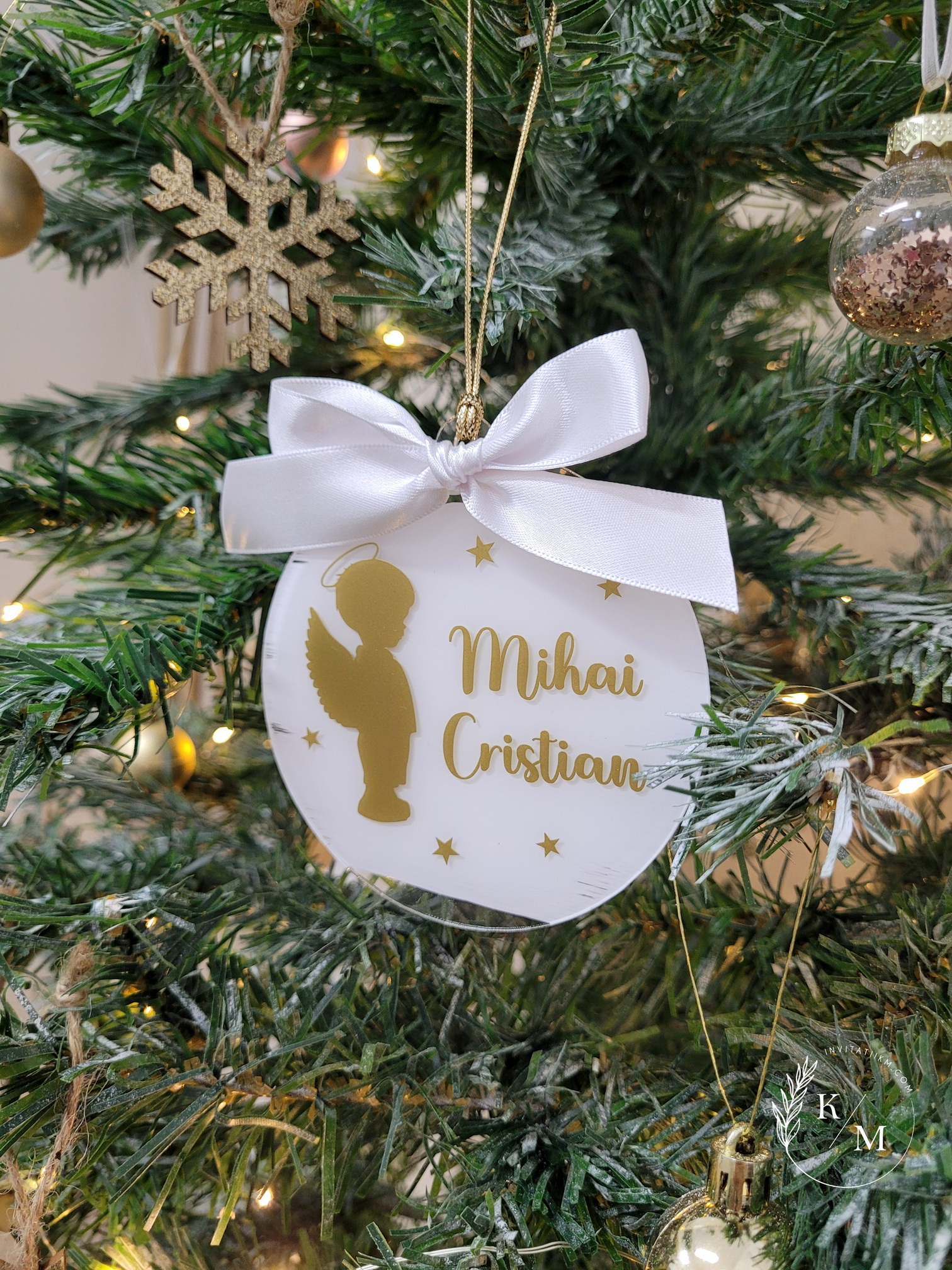 Ornamente de Craciun personalizate cu nume sau texte (Craciun fericit, Craciun magic, Primul Craciun impreuna, Primul Craciun in 2/3/4 etc).