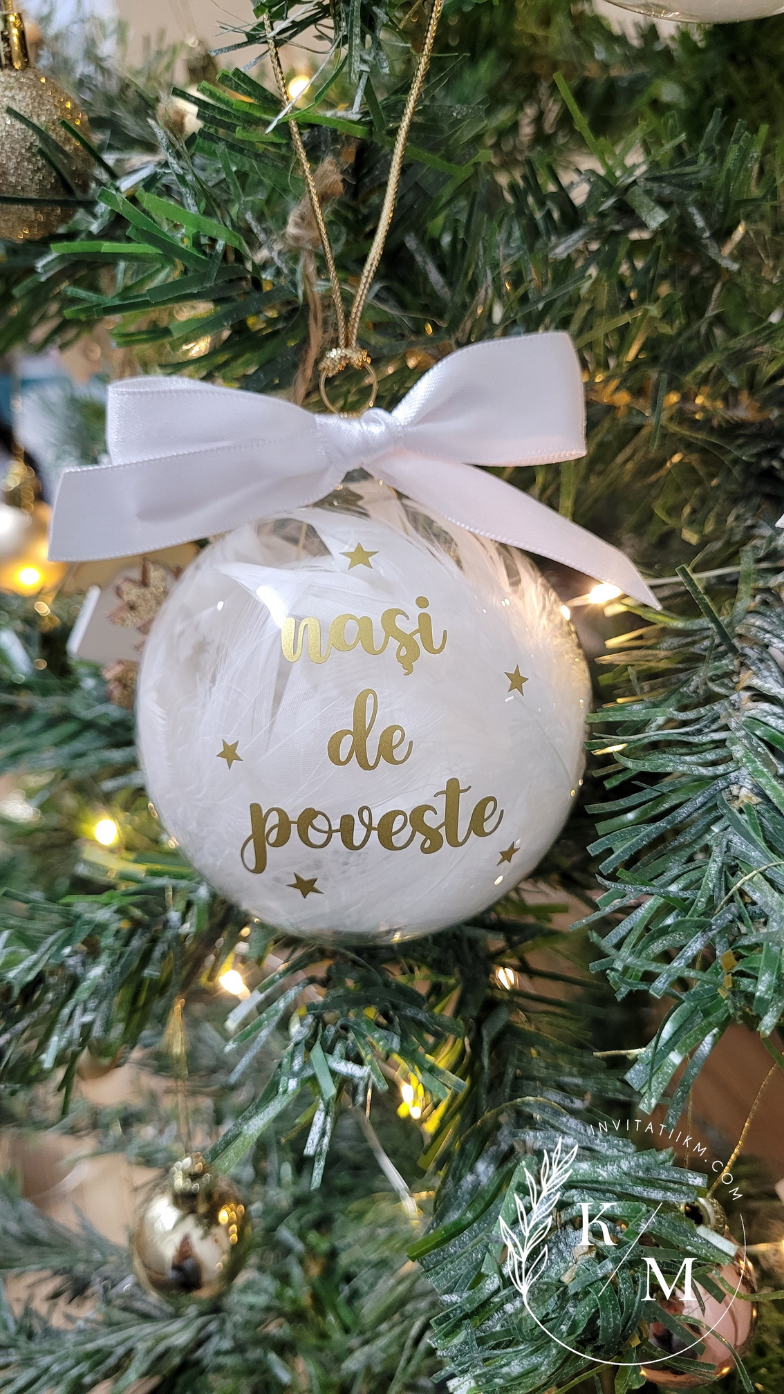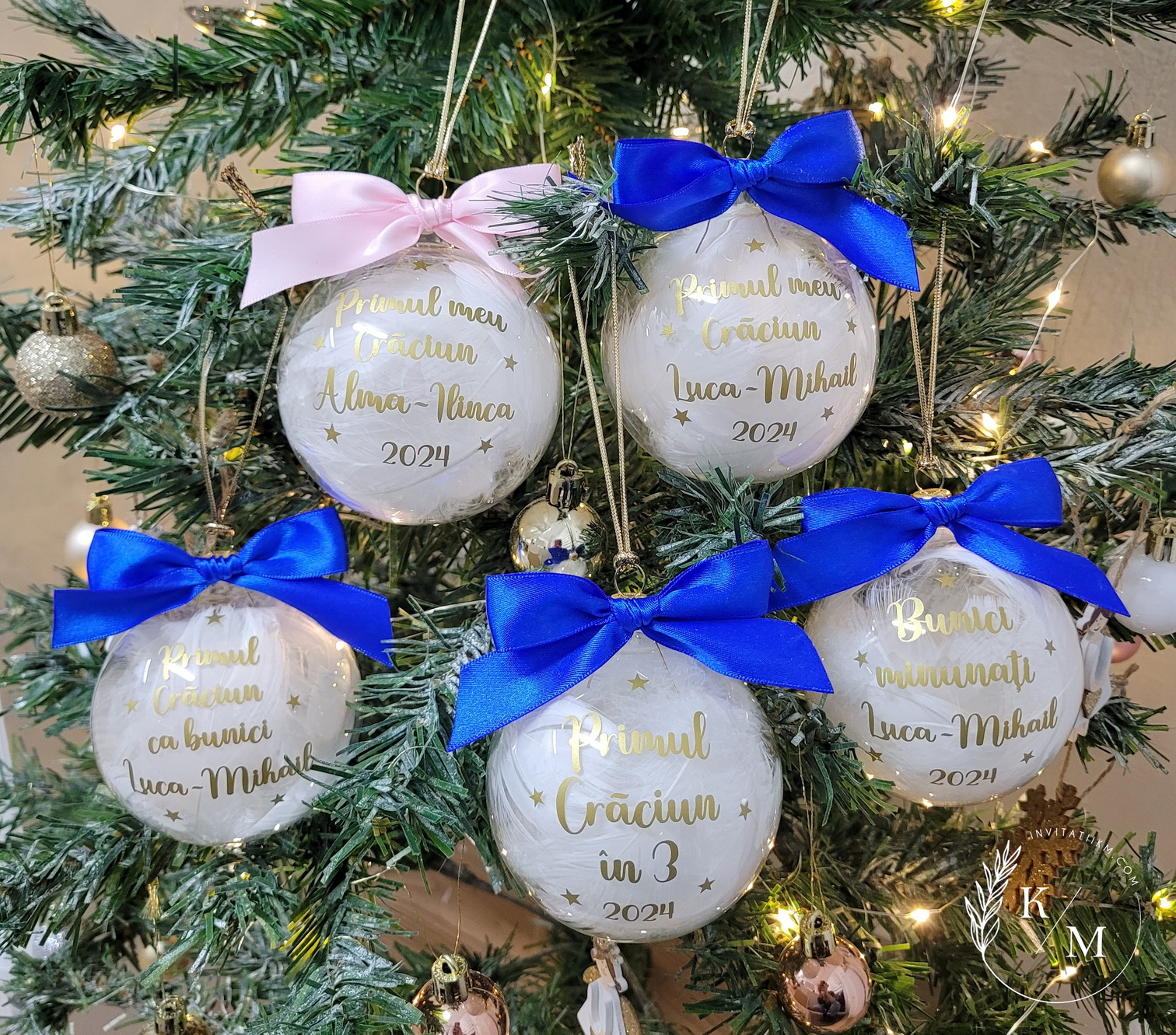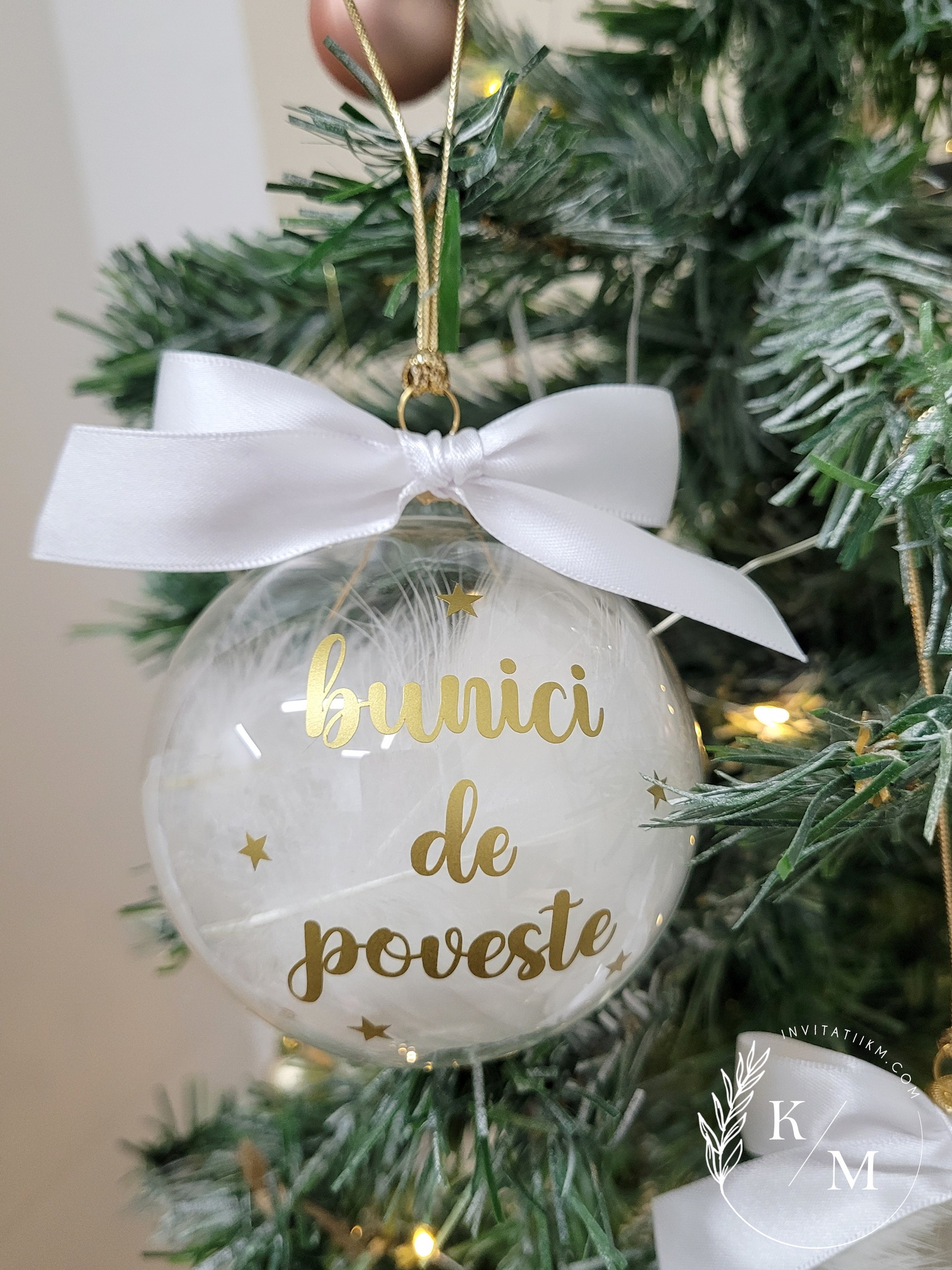Transformă bradul tău într-o poveste de iarnă cu seturile noastre de globuri de Crăciun personalizate, umplute cu puf alb sau colorat, realizate manual din sticlă (la noi în România) și decorate cu grijă în atelierul nostru. Fiecare glob este unic – scrisul fin, detaliile delicate și finisajul elegant aduc o notă de rafinament autentic în decorul tău de sărbătoare.