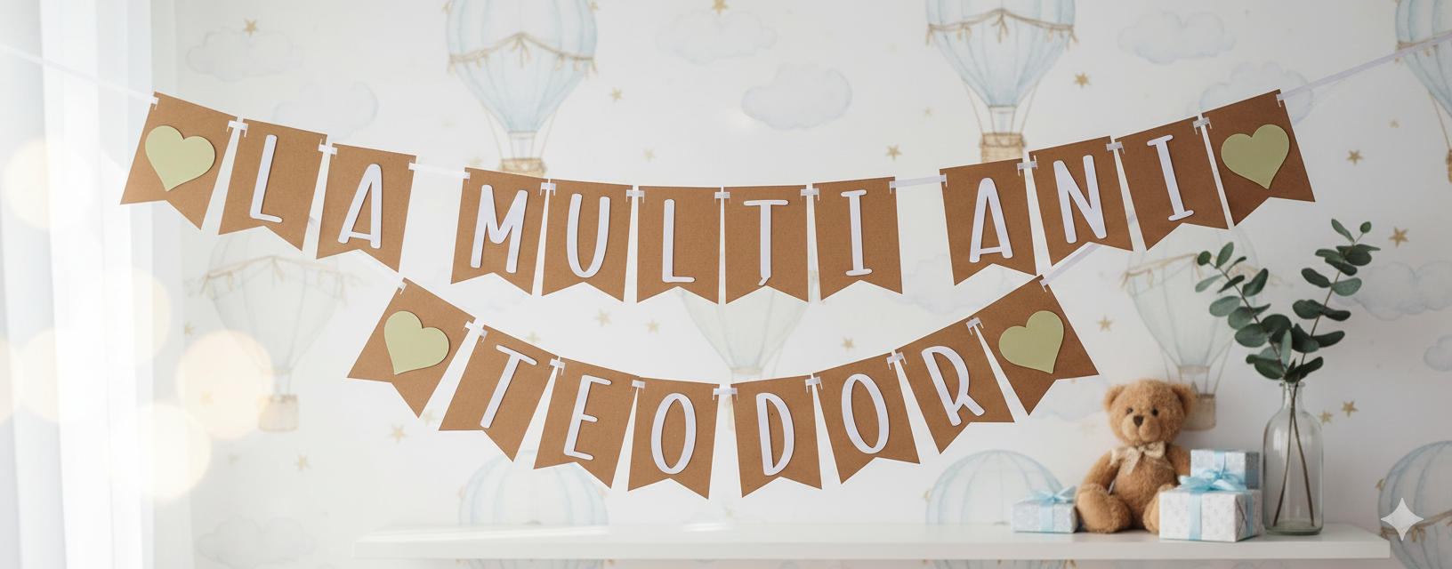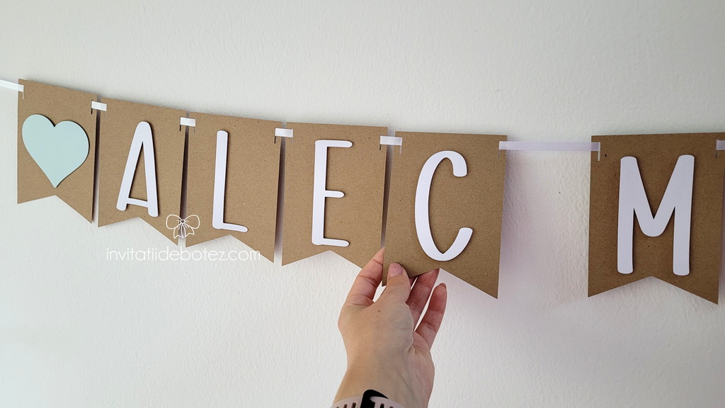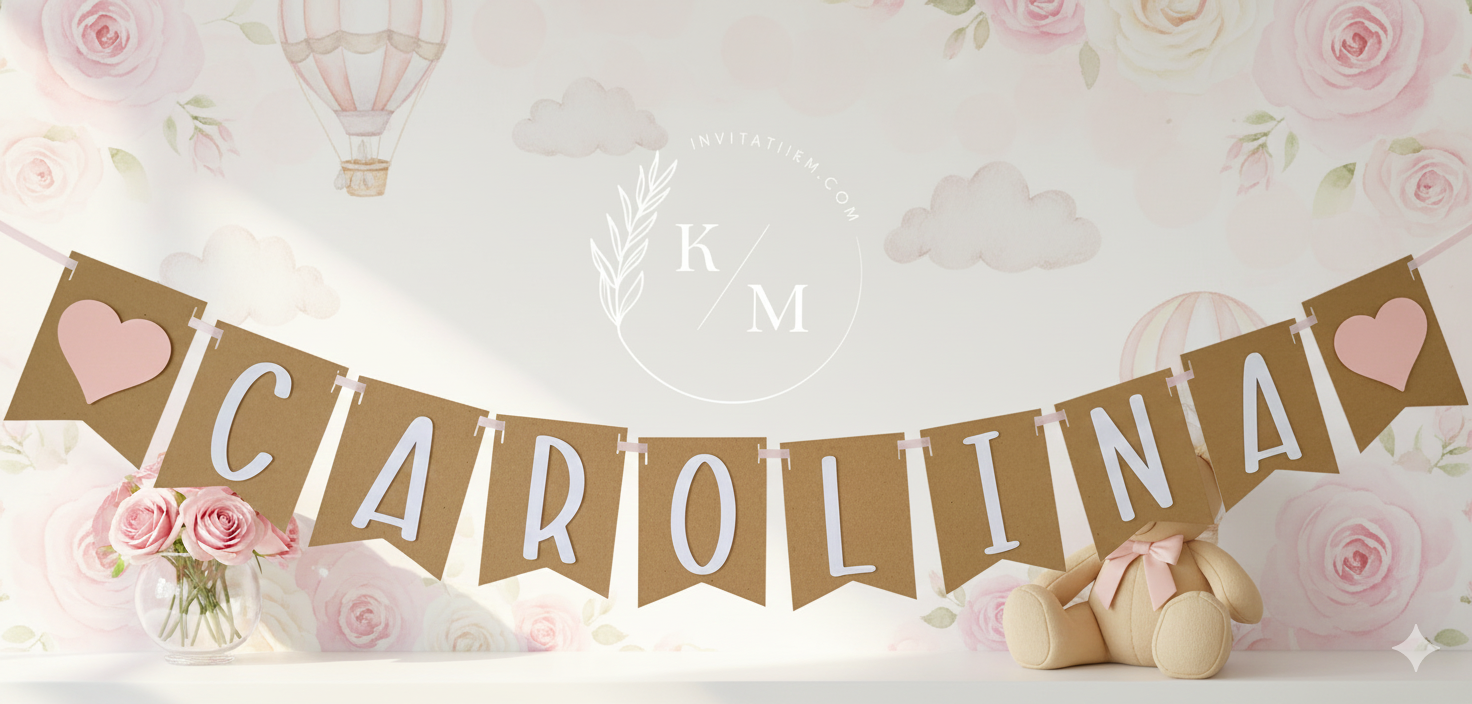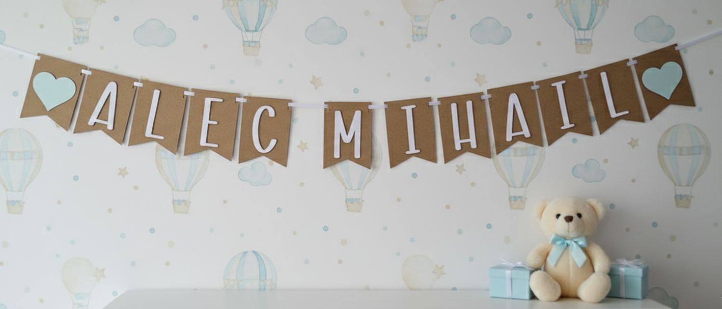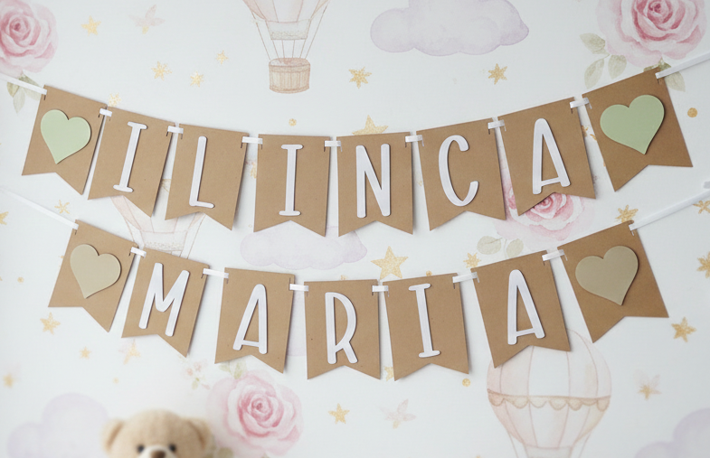 Ghirlanda cu nume/banner personalizat cu nume pentru botez, aniversare sau camera copilului