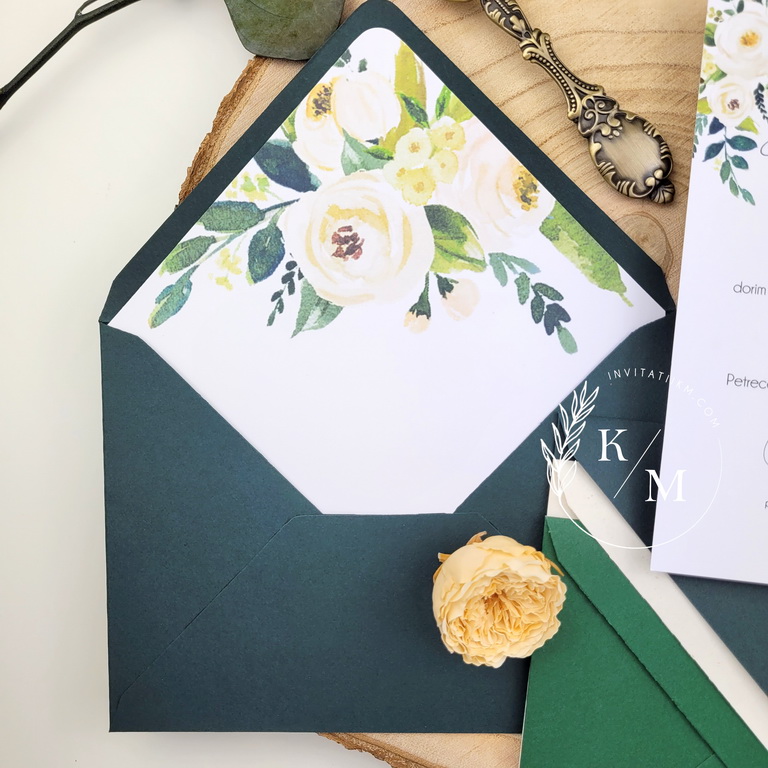 Transformă fiecare invitație într-o experiență memorabilă cu un liner personalizat pentru plicuri de nuntă, creat pentru a completa armonios designul invitațiilor tale.