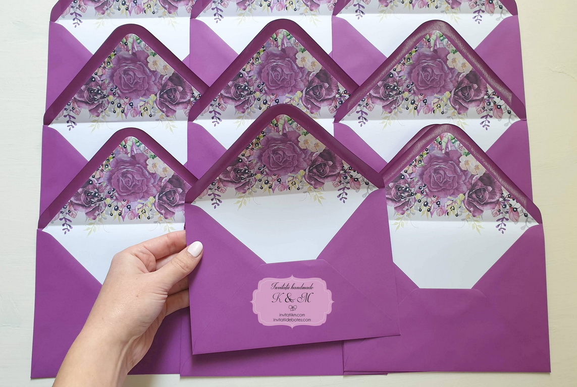 Transformă fiecare invitație într-o experiență memorabilă cu un liner personalizat pentru plicuri de nuntă, creat pentru a completa armonios designul invitațiilor tale.