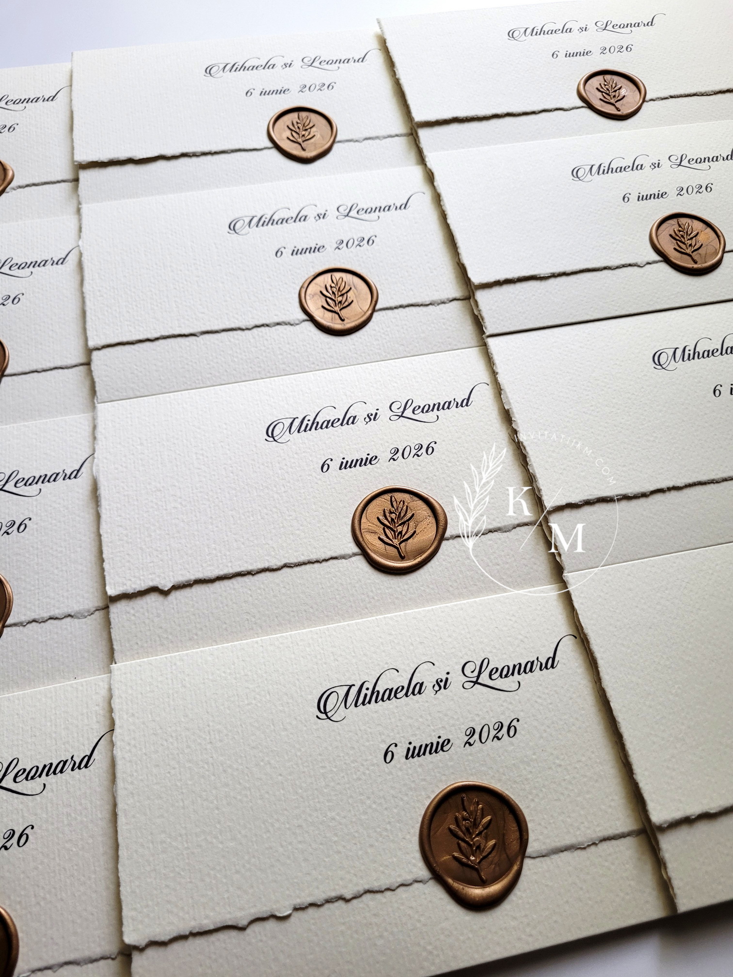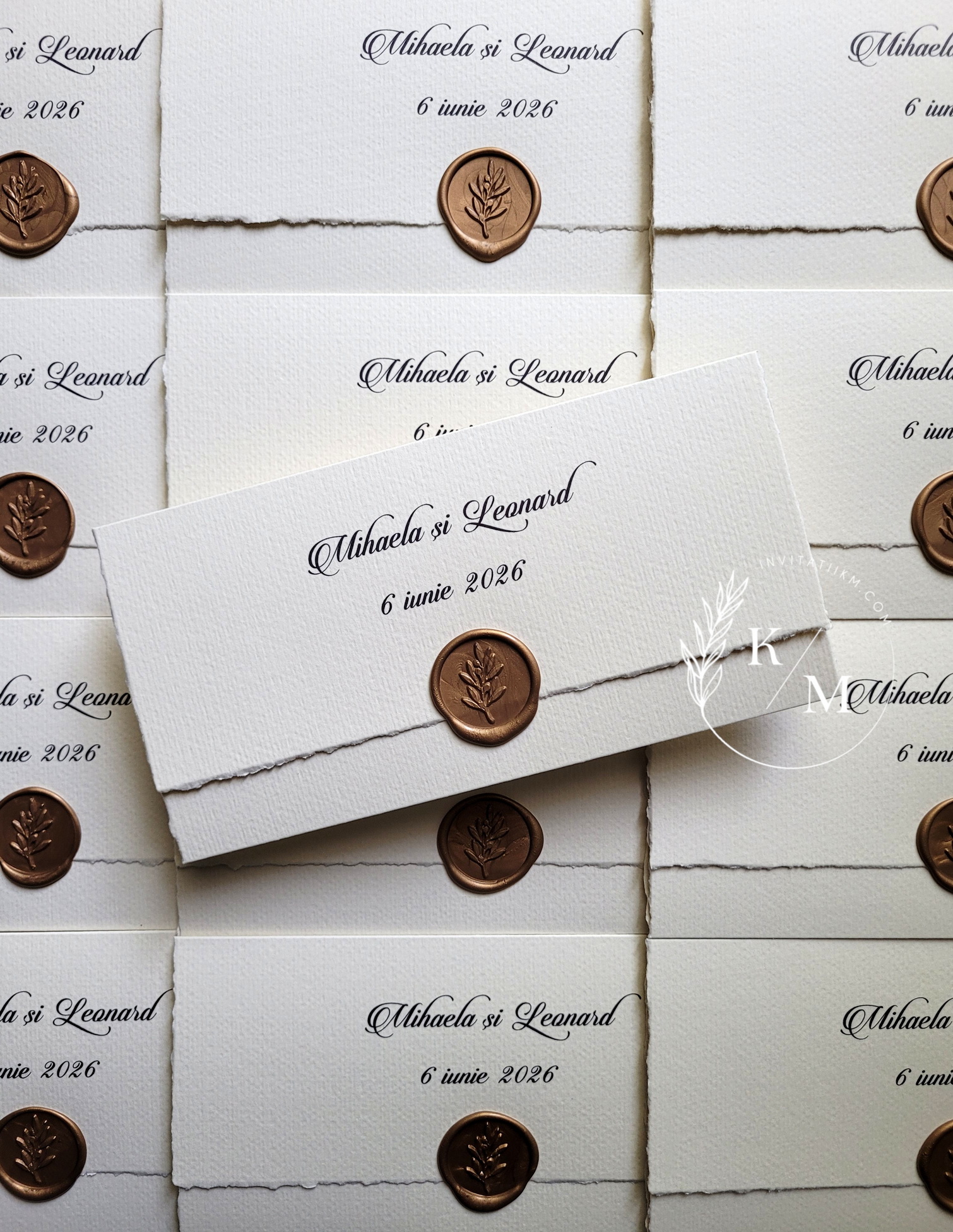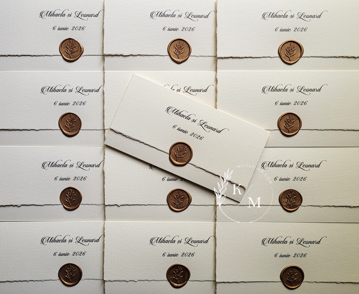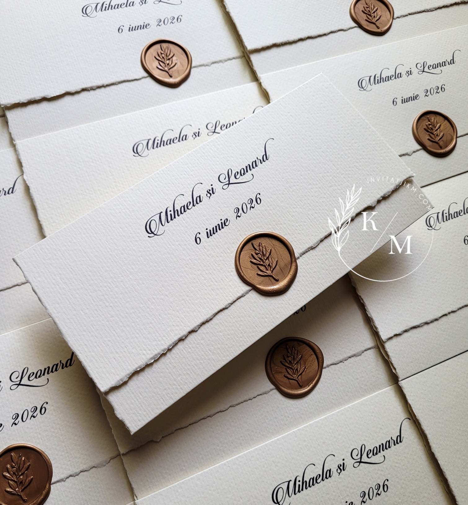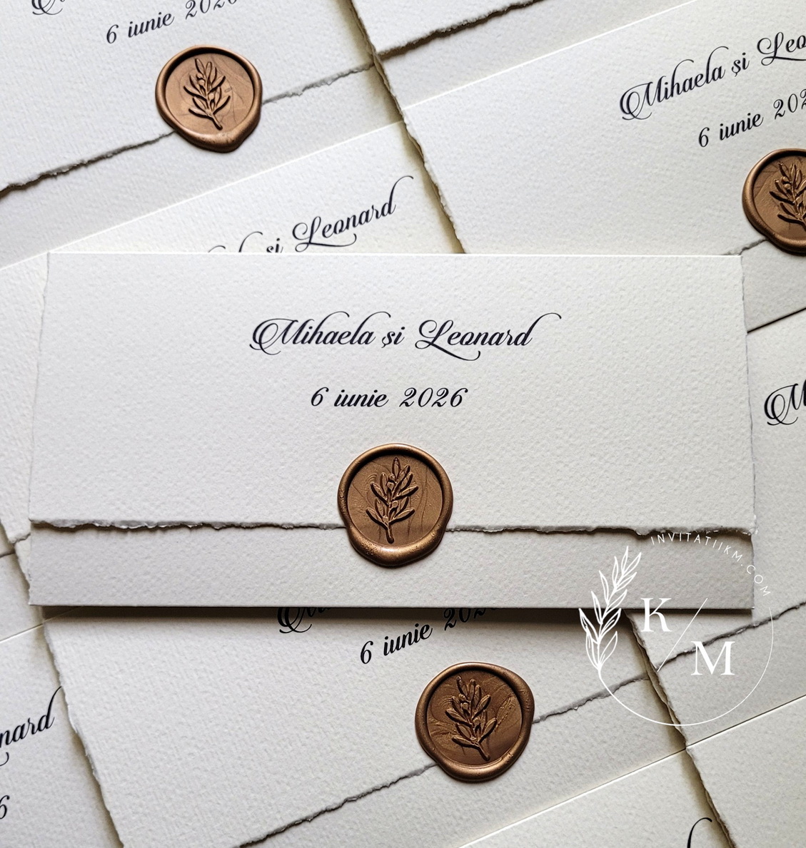 O invitație de nuntă rafinată, creată pentru cuplurile care iubesc simplitatea sofisticată și detaliile fine, dar de efect. Realizată din carton texturat de calitate, invitația are marginile nefinisate, franjurate manual, și este închisă cu un sigiliu din ceară turnat la cald.