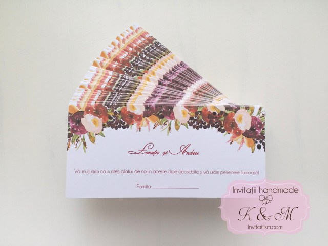 Invitatii, meniuri, plicuri de bani de nunta cu flori si frunze de toamna cod 177 17/09/201903/02/2025