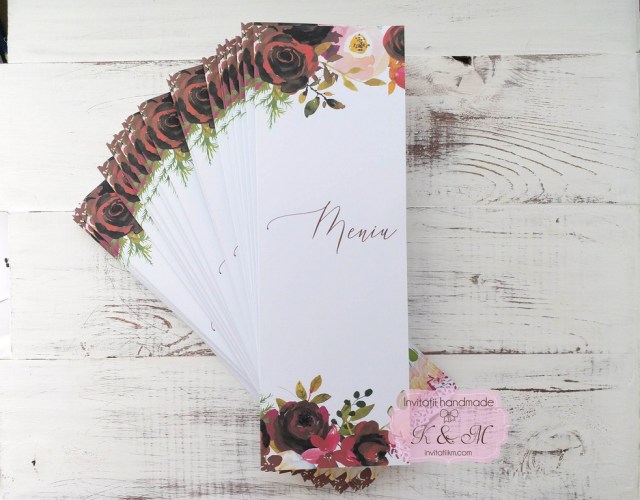 Invitatii, meniuri, plicuri de bani de nunta cu flori si frunze de toamna cod 180 17/09/201904/02/2025