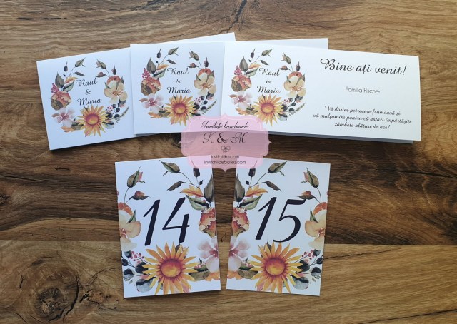 Invitatii, meniuri, plicuri de bani de nunta cu flori si frunze de toamna cod 179 17/09/201903/02/2025