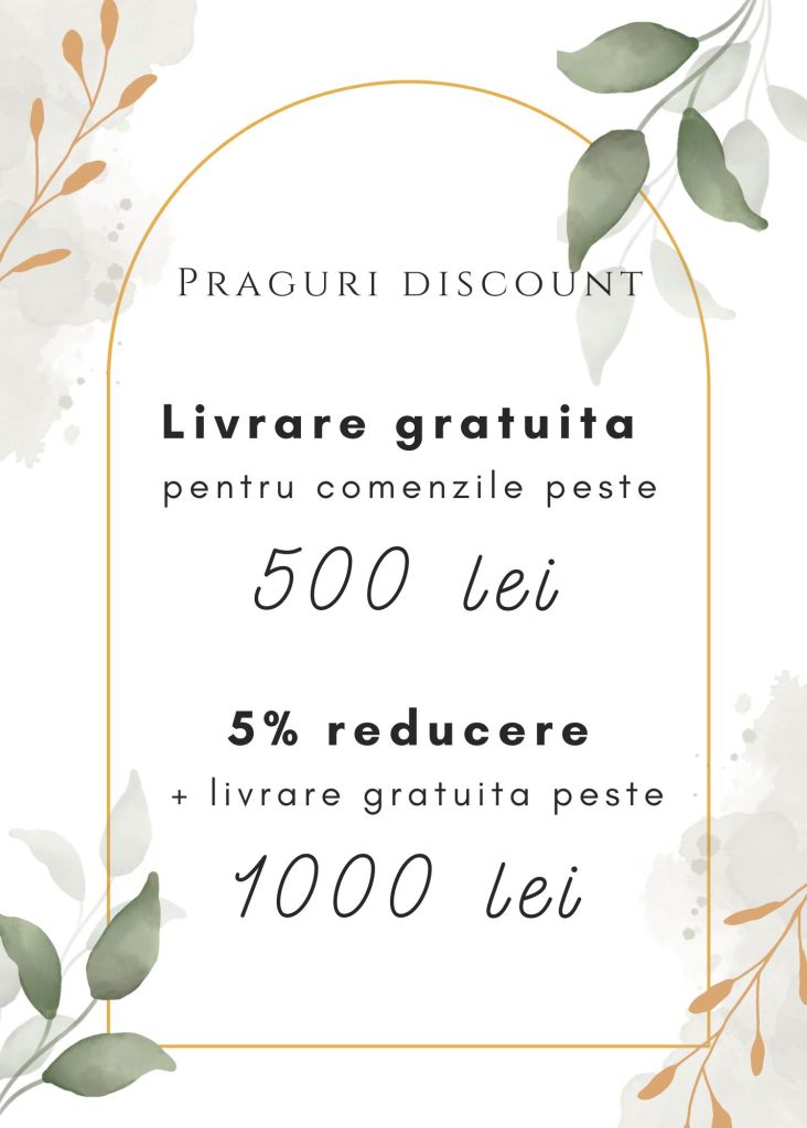 Taxa de urgenta (pentru realizarea comenzii in maxim 1-2 zile lucratoare): contra cost + 50 lei – doar in masura in care putem onora comanda (in perioadele de varf este posibil sa nu se poata urgenta comanda, va rugam sa ne contactati pentru detalii)