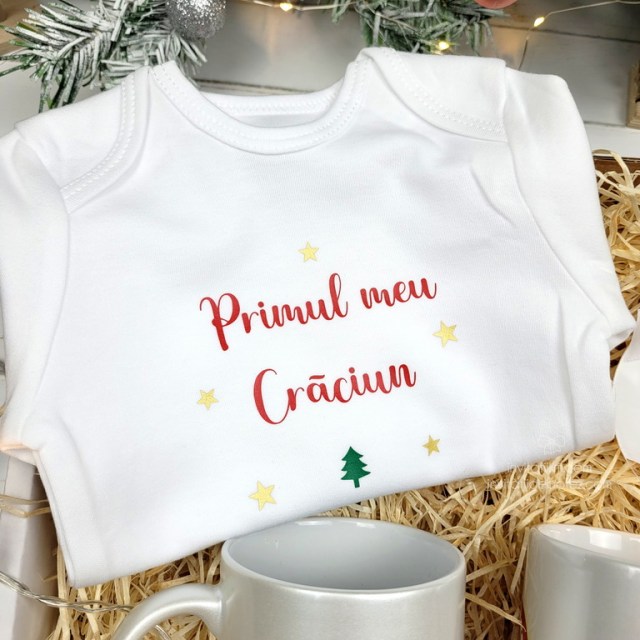 Cadou de Craciun pentru bebe si parinti “Primul meu Craciun” cu detalii aurii 22/11/202504/12/2025