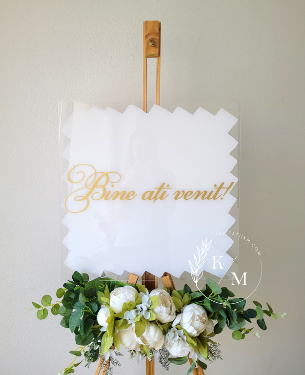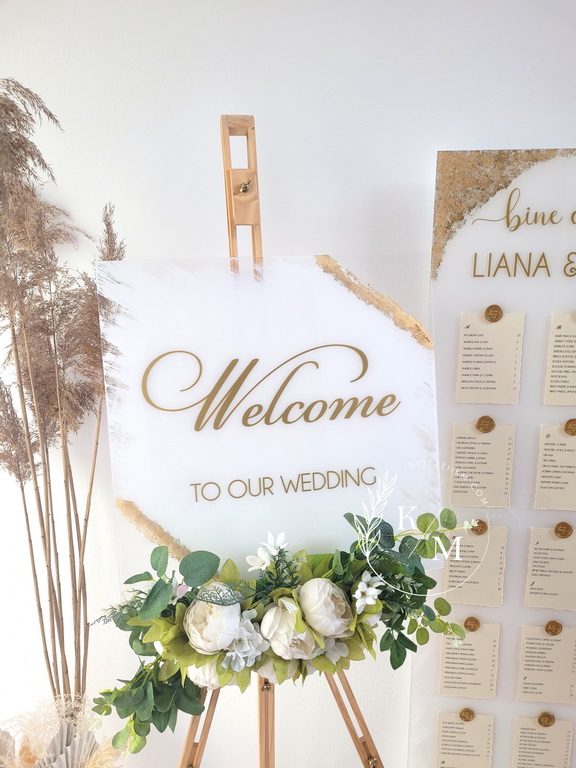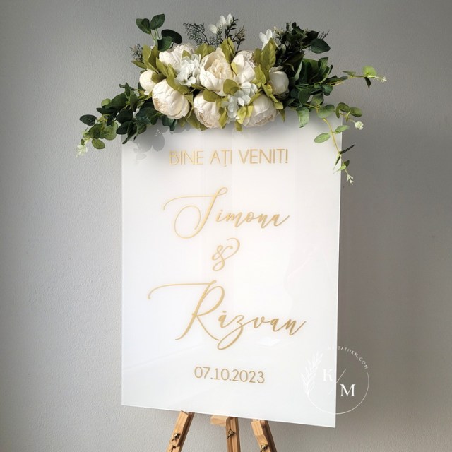 Panou intampinare invitati la nunta alb si auriu, panou bine ati venit la nunta noastra 13/07/202402/09/2025