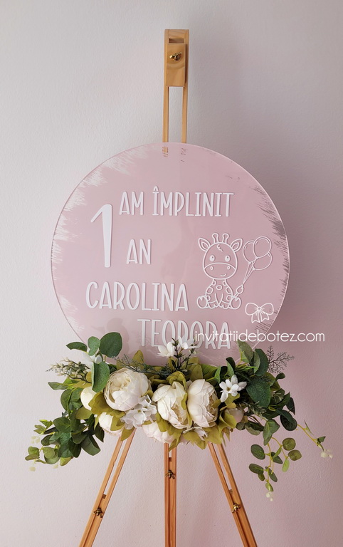 Panou intampinare botez din plexiglas, Panou bun venit la botezul meu roz si alb 13/07/202413/06/2025