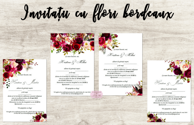 Invitatii de nunta cu flori bordeaux cod 141 04/01/201907/01/2023
