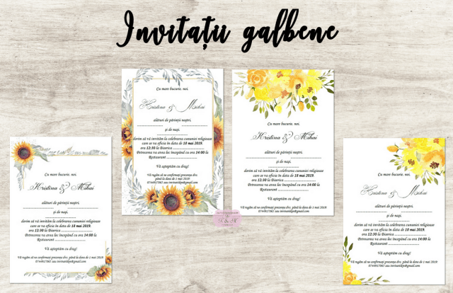 Invitatii de nunta cu flori galbene si floarea-soarelui cod 142 04/01/201907/01/2023