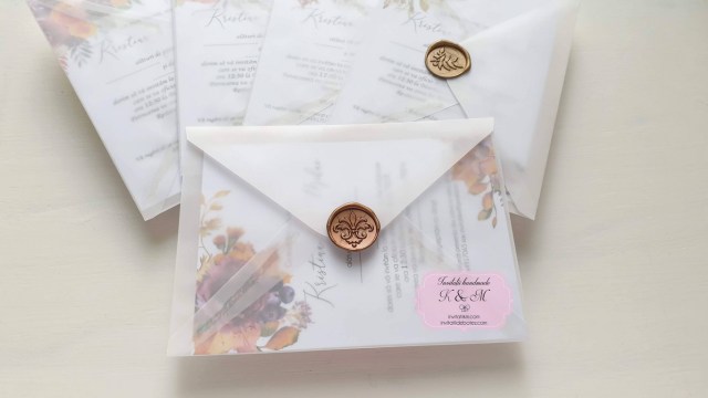 Invitatii de nunta de toamna cu sigilii si plicuri din hartie de calc cod 184 17/09/201907/01/2023