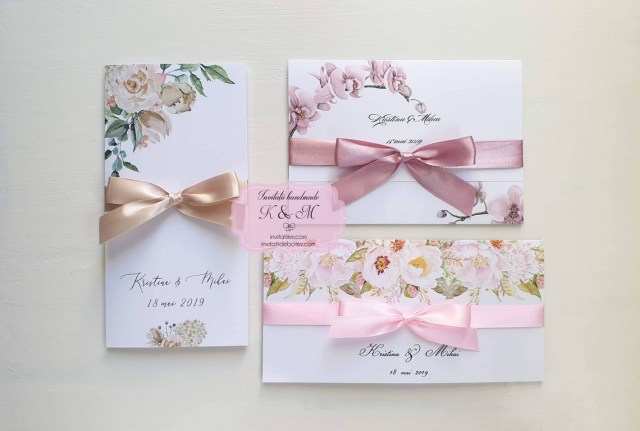 Invitatii, meniuri, plicuri de bani de nunta cu flori crem si roz cod 186 17/09/201904/02/2025