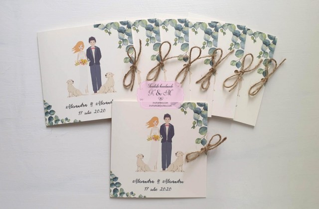 Invitatii cu portrete si caini, papetarie cu eucalipt cod 407 12/02/202007/01/2023