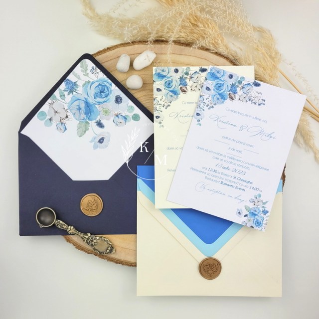 Invitatii de nunta cu forme geometrice si flori bleumarin-roz-navy-pink-blush cod 445 28/06/202127/02/2023