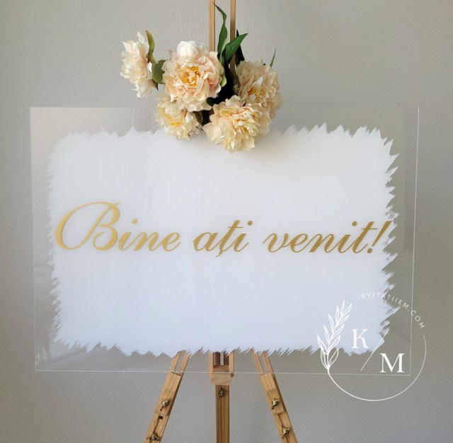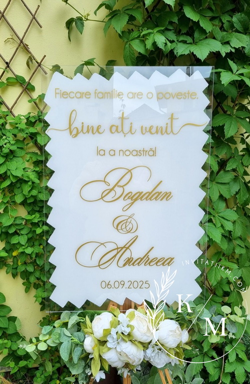 Panou Bine Ati Venit la Nunta noastra din plexiglas cu detalii aurii 04/06/202516/06/2025