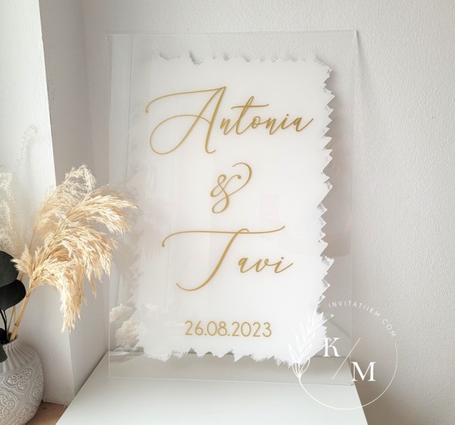 Panou transparent din plexiglas cu liste asezare invitati si foita aurie 15/06/202411/03/2025