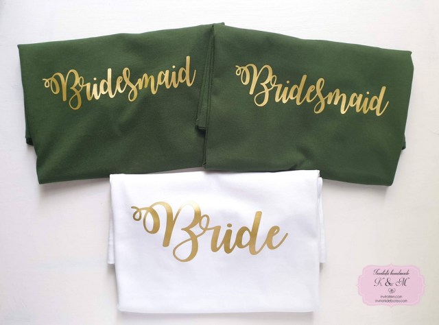 Tricouri mireasa si domnisoare de onoare alb+verde+auriu 09/01/202118/02/2023